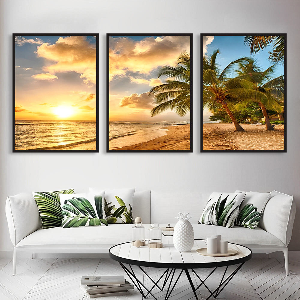 Mer et Plage sous le Soleil Couchant 3 Partie Broderie Diamant