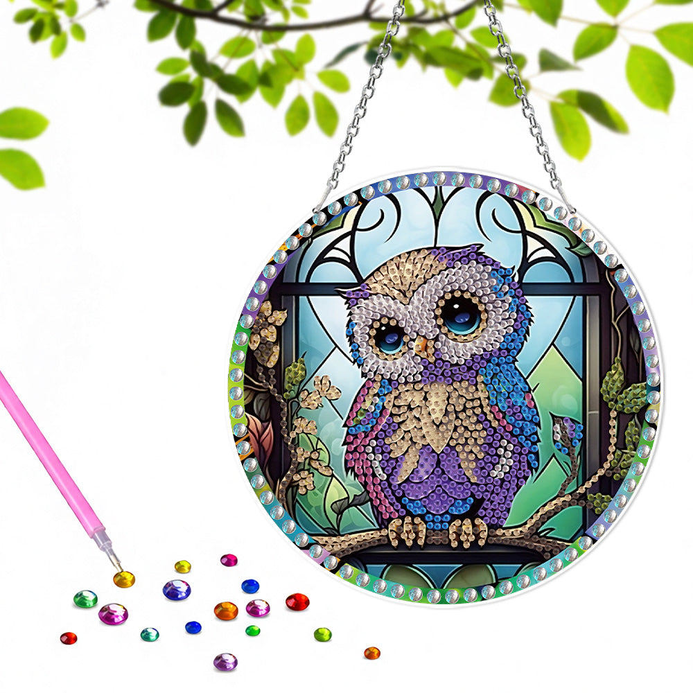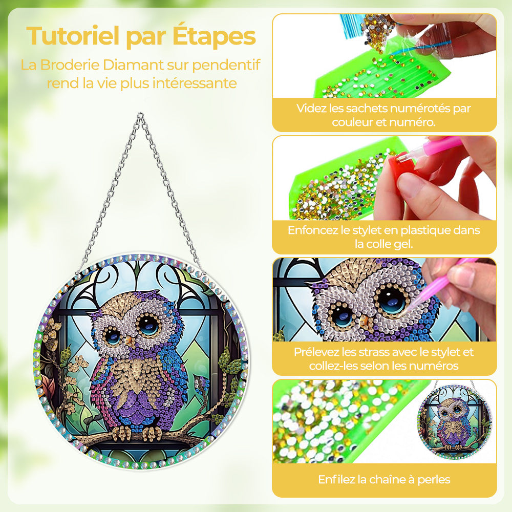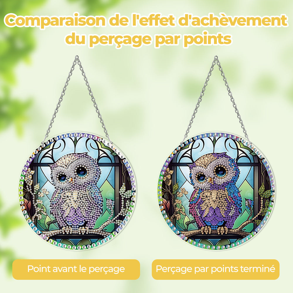 Un Hibou Mignon en Acrylique Pendentif Broderie Diamant