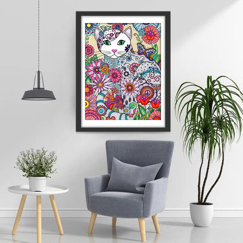 Chat et le Monde des Fleurs Broderie Diamant