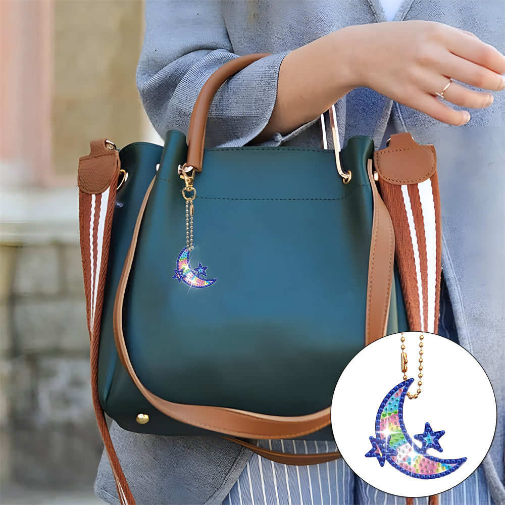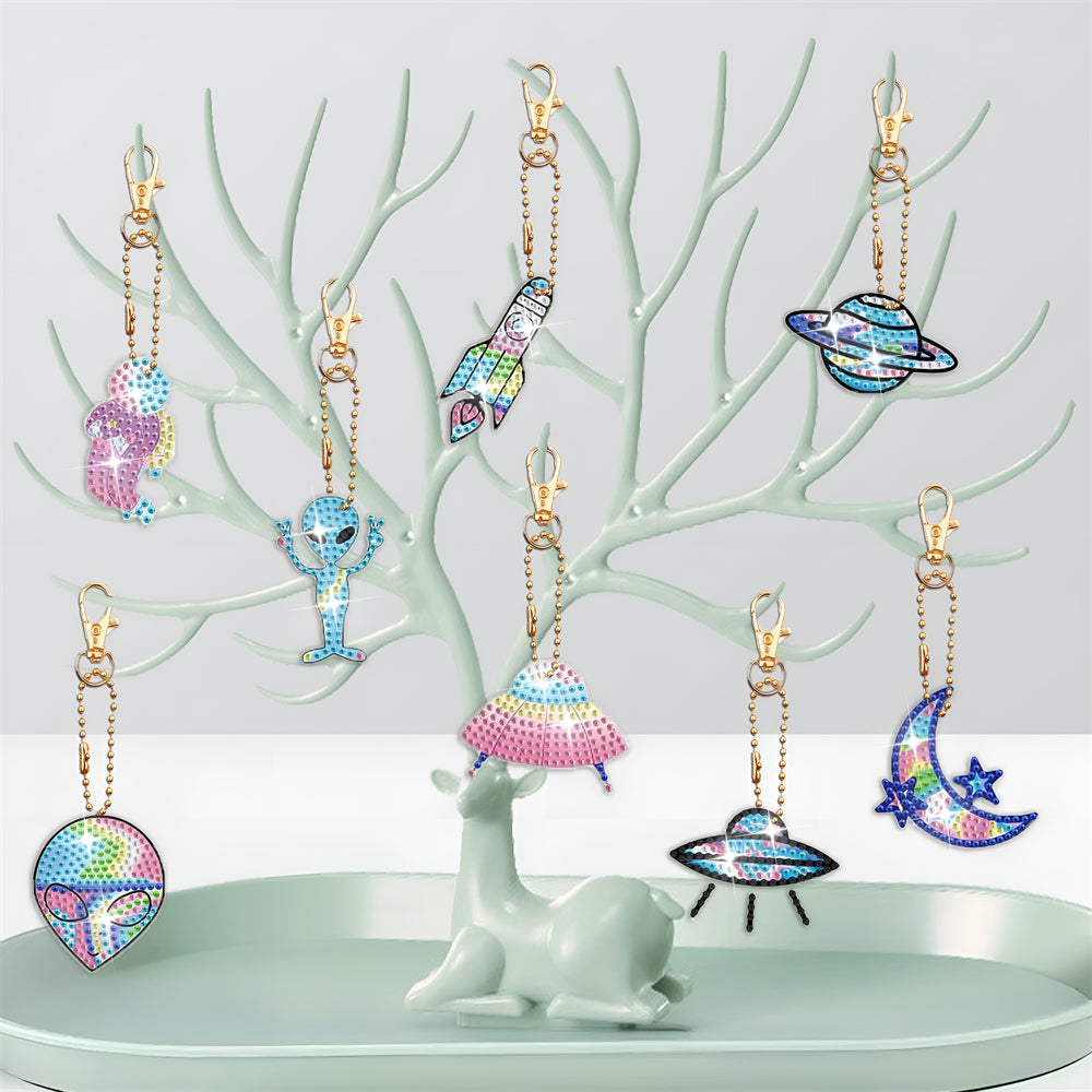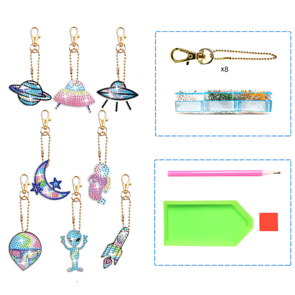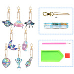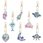 8Pcs de Porte-Clés Acryliques Double Face Équipement Aérospatial Broderie Diamant