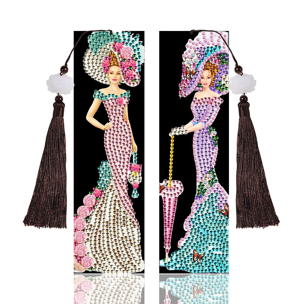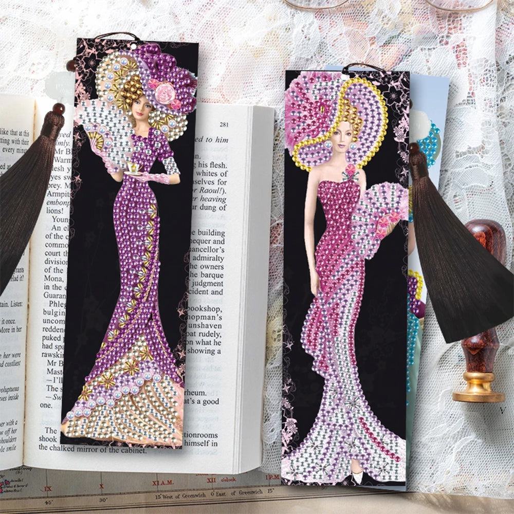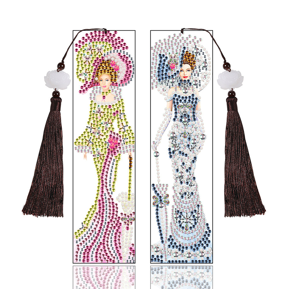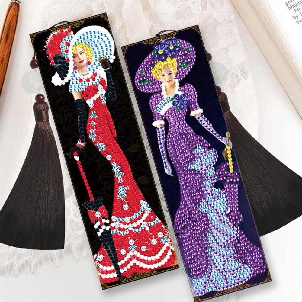 2/18Pcs de Marque-Pages en Cuir Femme Charmante Broderie Diamant