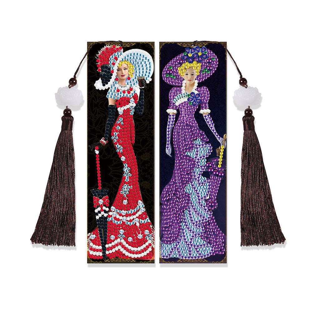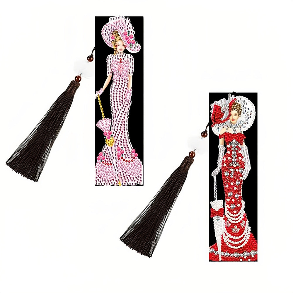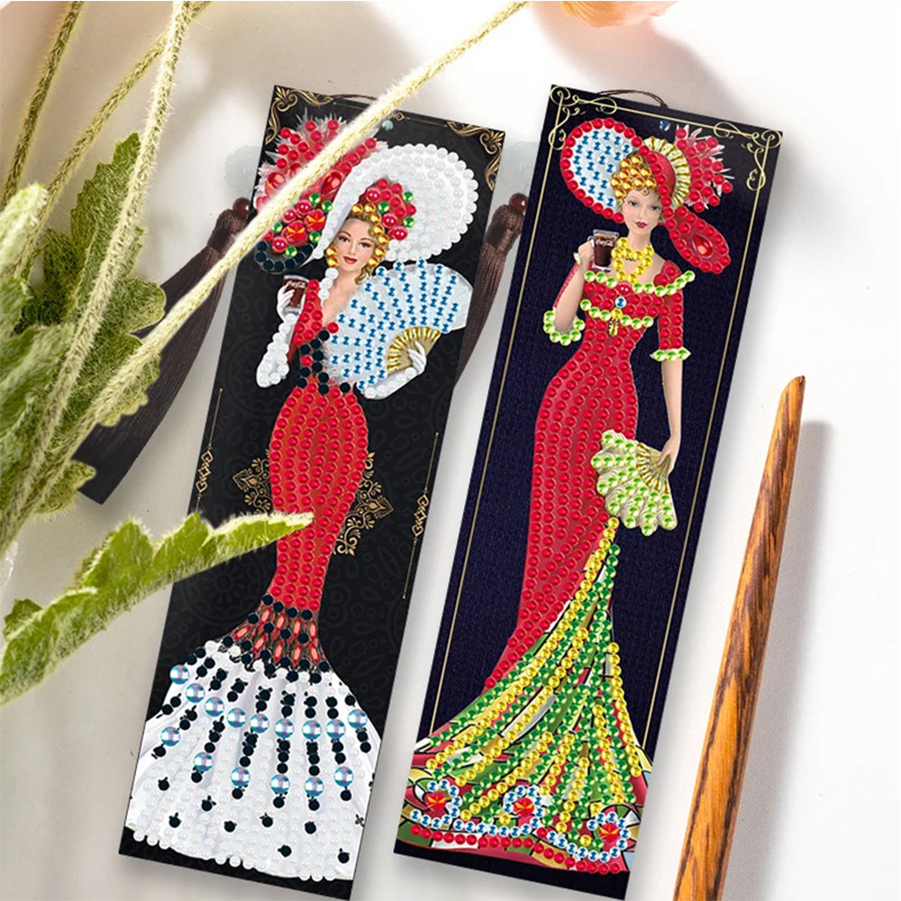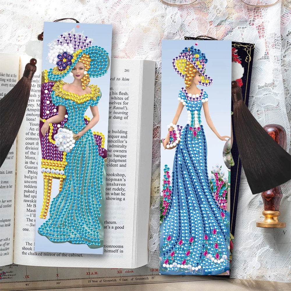 2/18Pcs de Marque-Pages en Cuir Femme Charmante Broderie Diamant