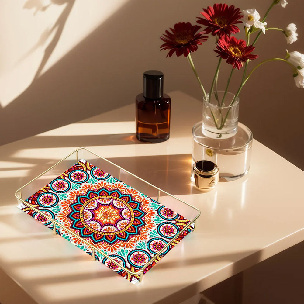Mandala Brillant de Forme Spéciale Acrylique + Plateau de Salle de Bain en Alliage Broderie Diamant