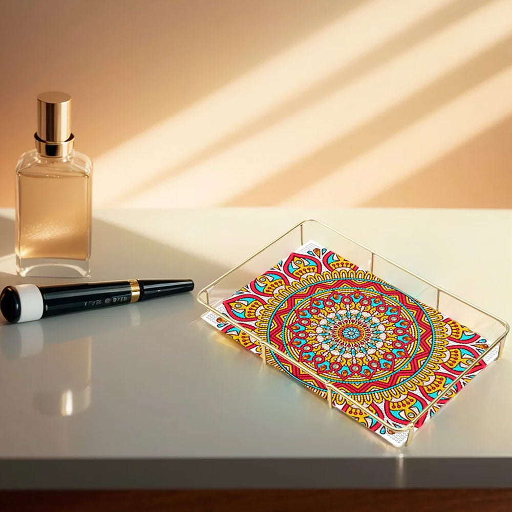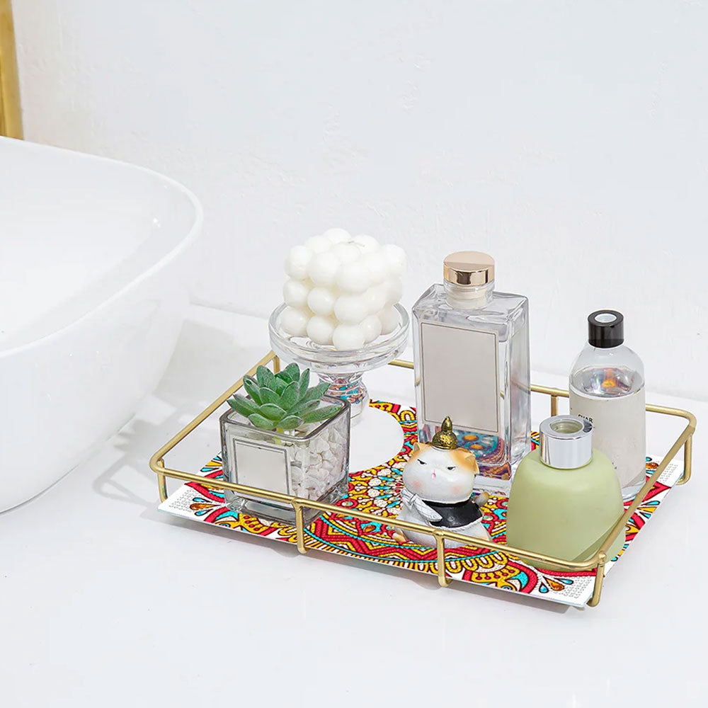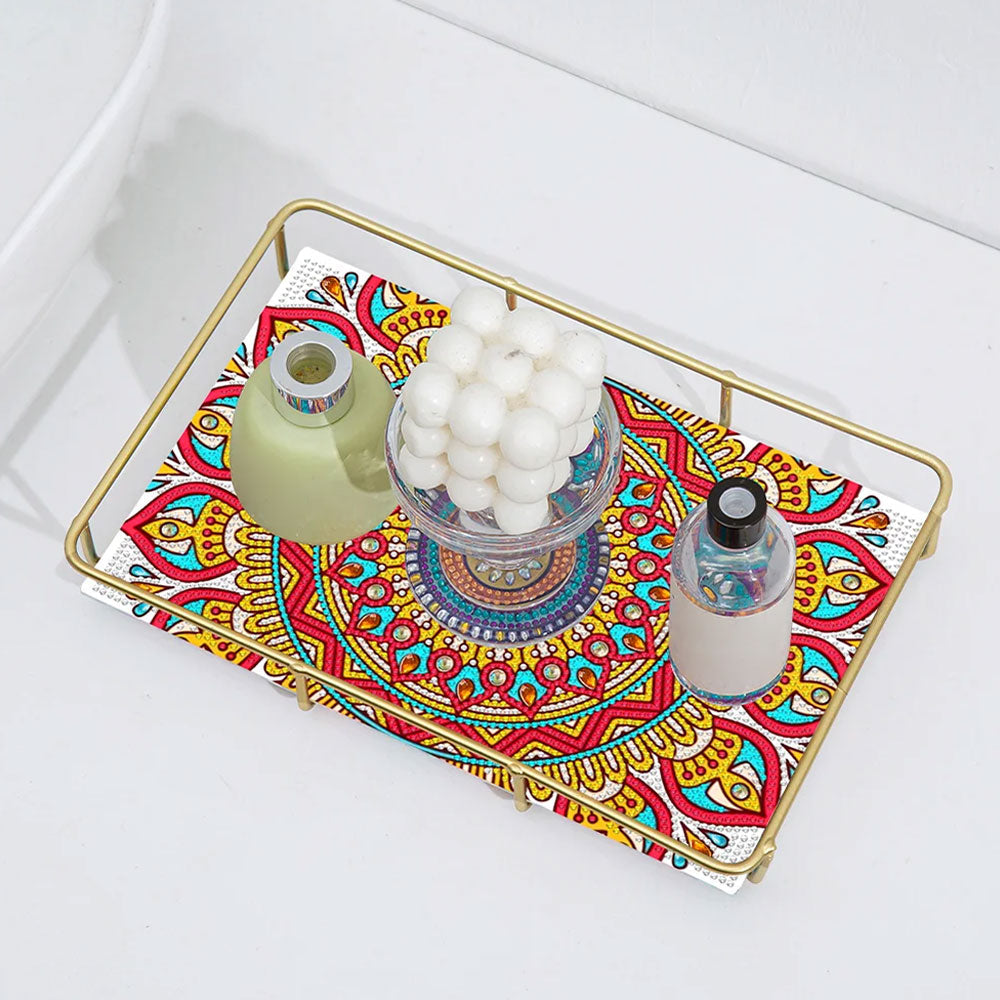 Mandala Pétale de Forme Spéciale Acrylique + Plateau de Salle de Bain en Alliage Broderie Diamant