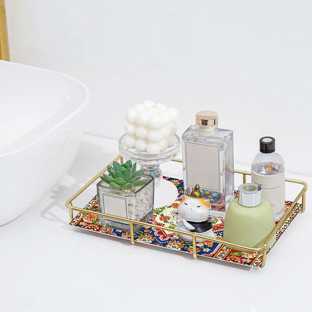 Mandala Rétro de Forme Spéciale Acrylique + Plateau de Salle de Bain en Alliage Broderie Diamant