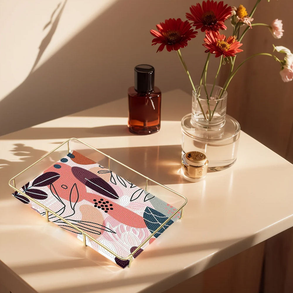 Motif de Plante de Forme Spéciale Acrylique + Plateau de Salle de Bain en Alliage Broderie Diamant