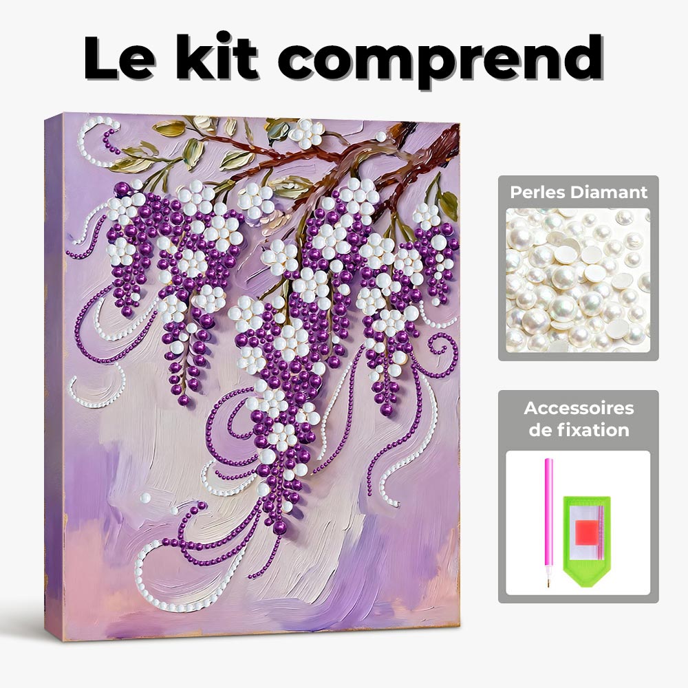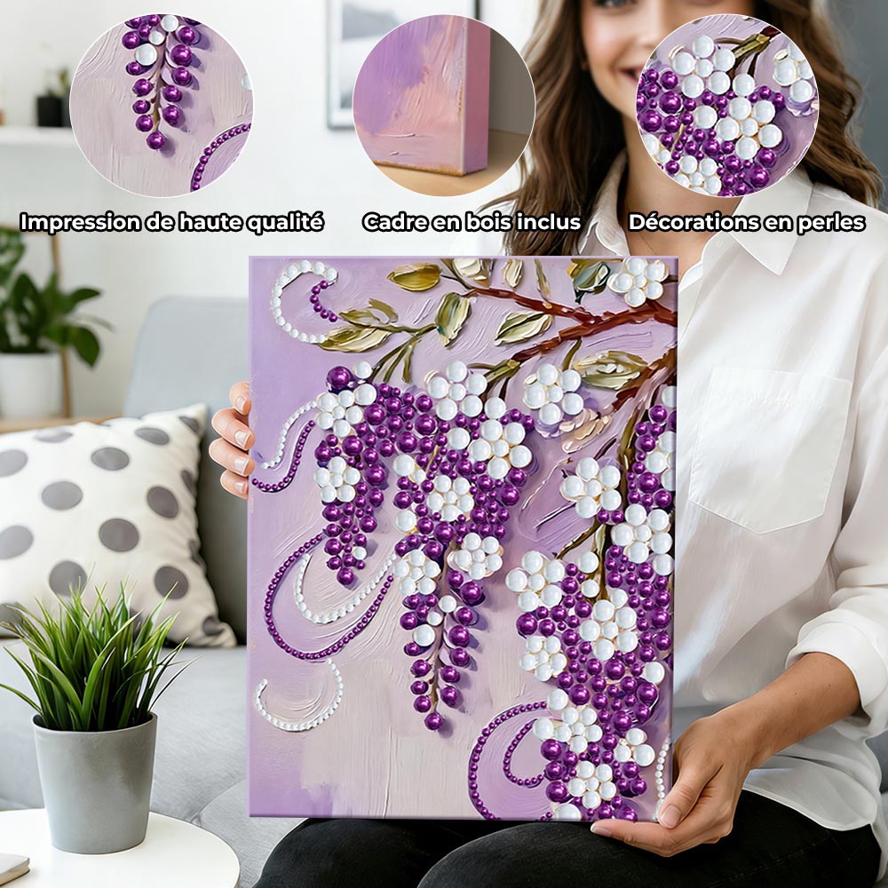 Broderie Diamant | Broderie Perle | Raisins Violets et Blancs sur la Vigne