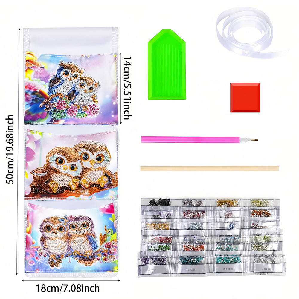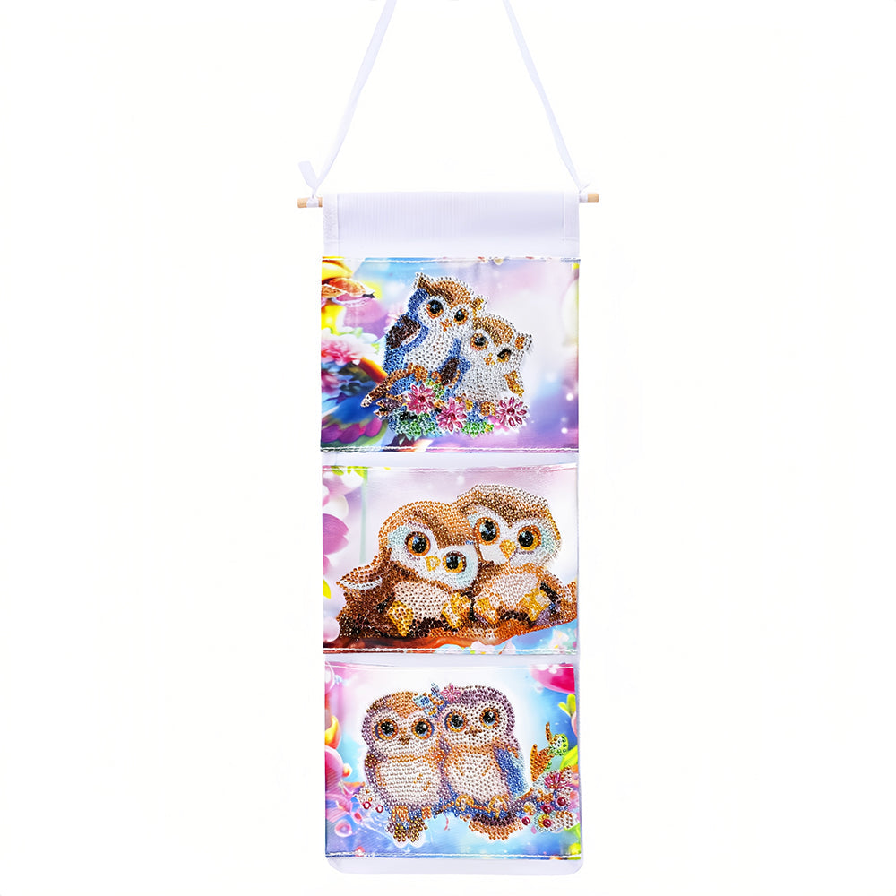 Couple de Hibou Mignon Maison Organisateur Sac de Rangement Suspendu Broderie Diamant