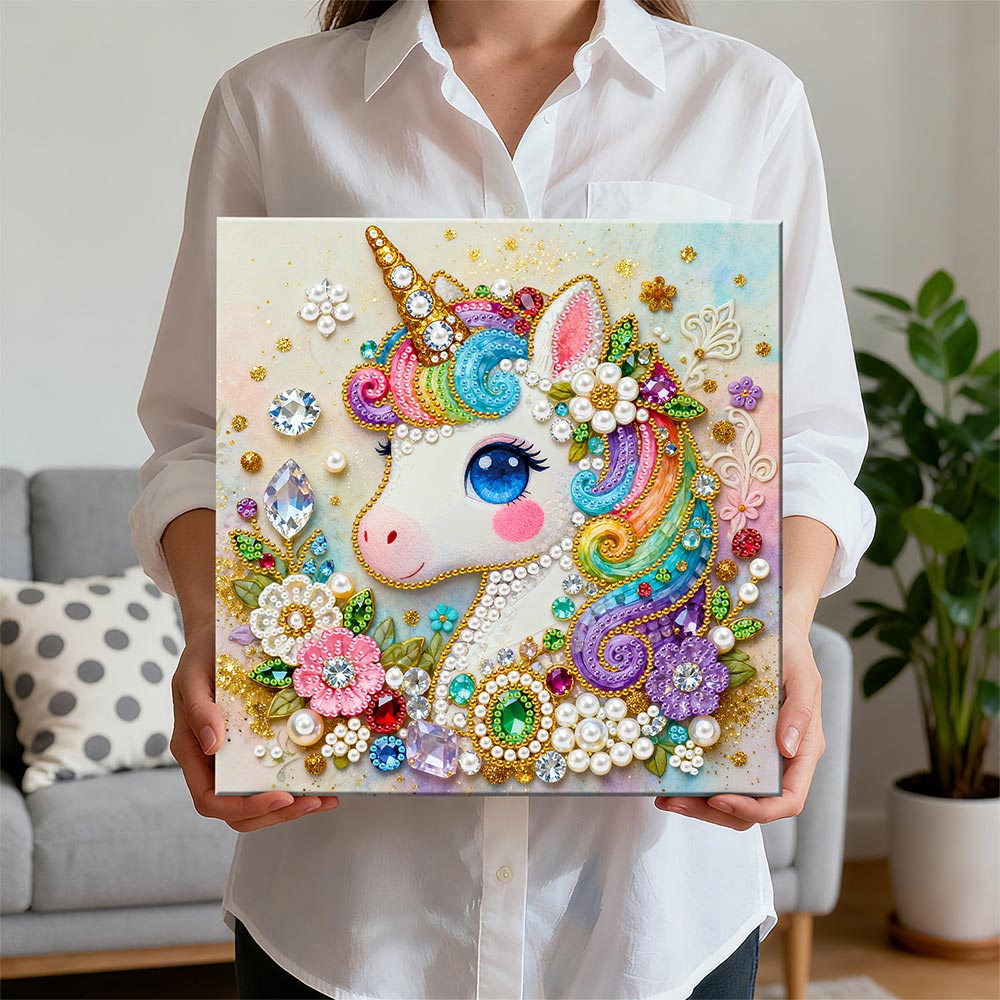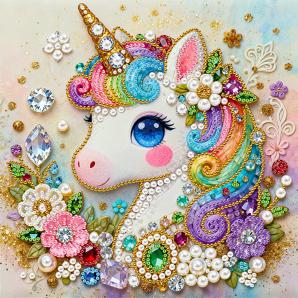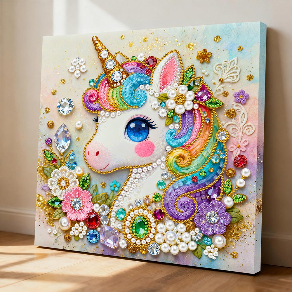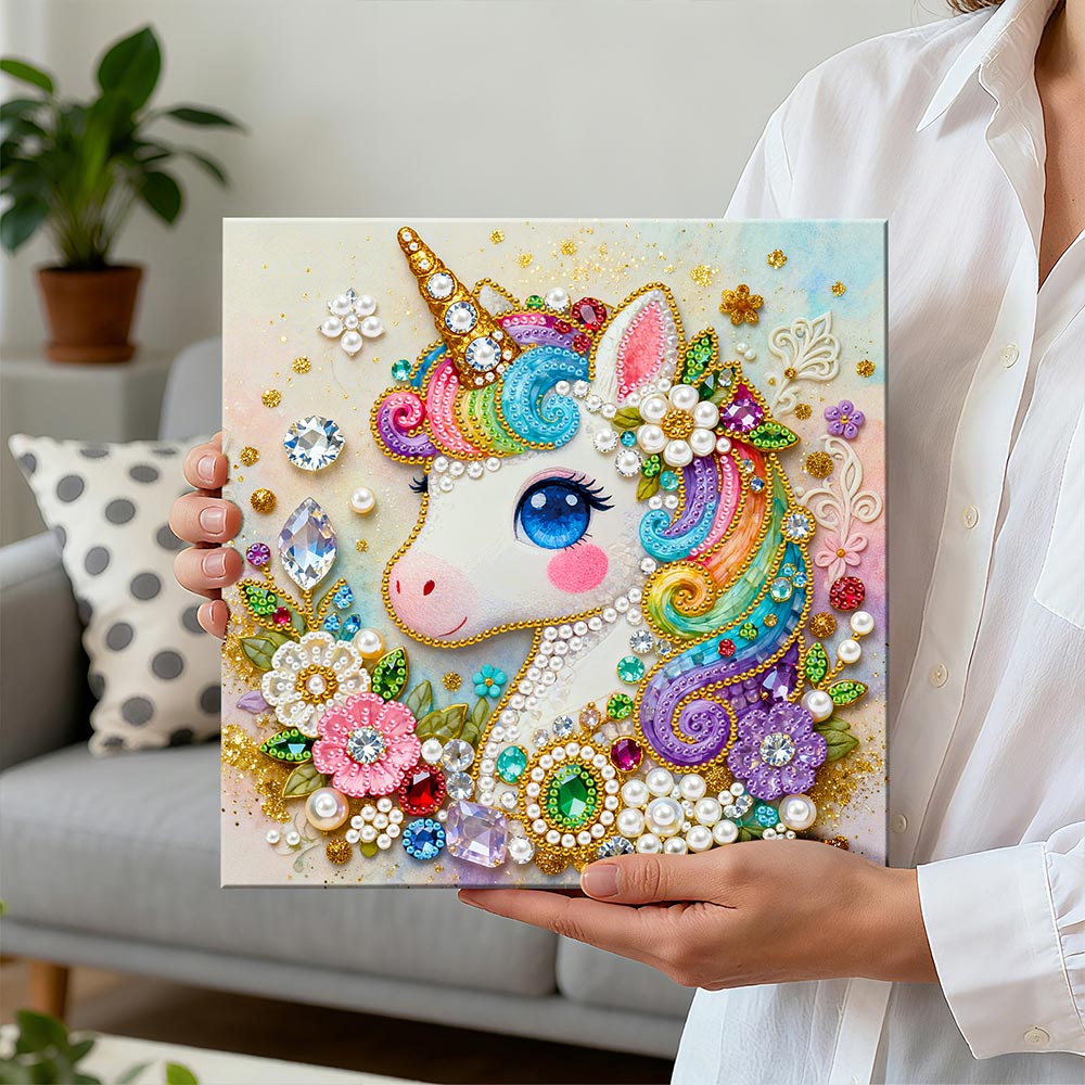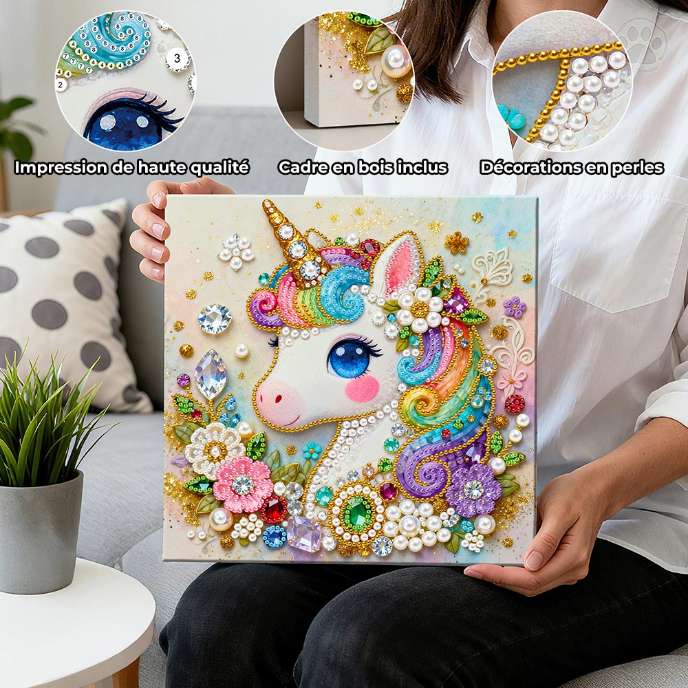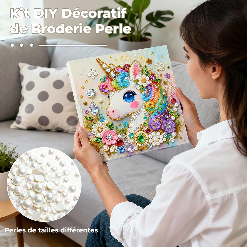 Broderie Diamant | Broderie Perle | Petite Licorne Blanche Mignonne