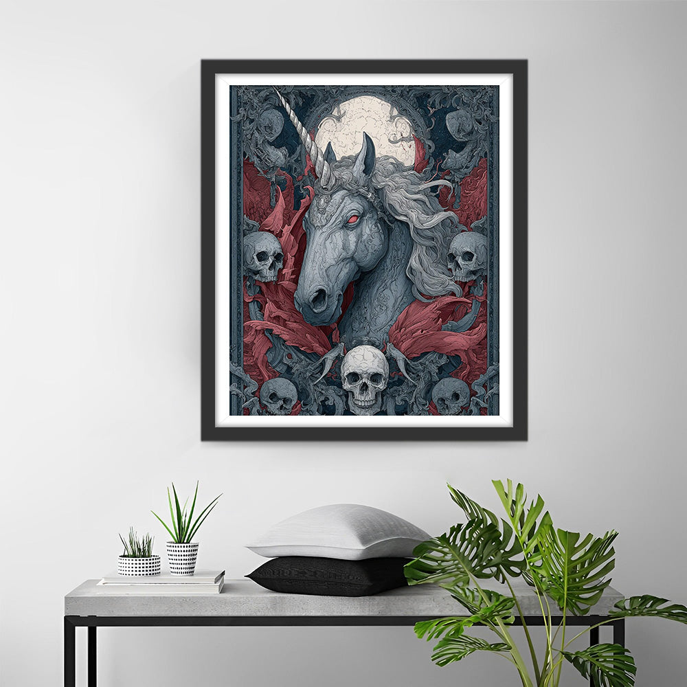 Licorne Sombre Terrifiante et Crânes Broderie Diamant