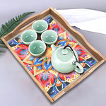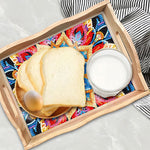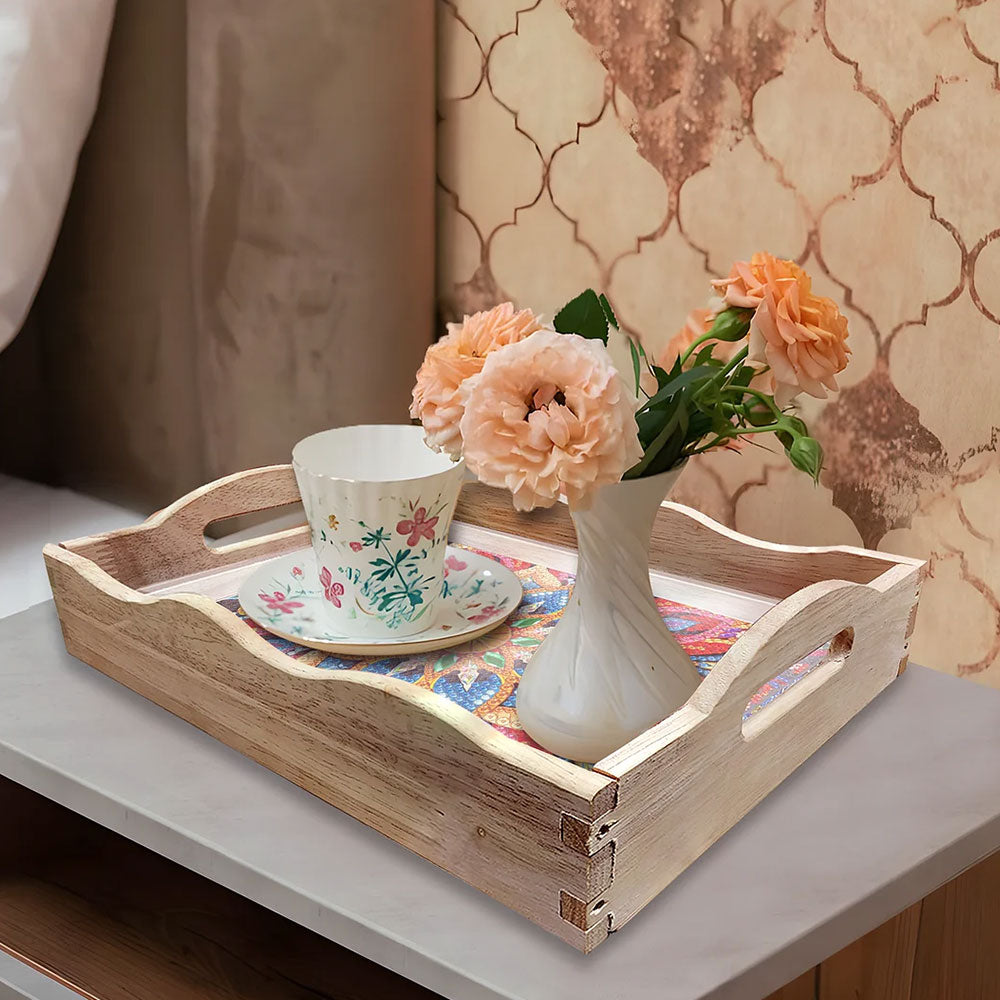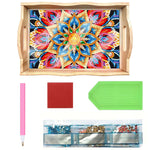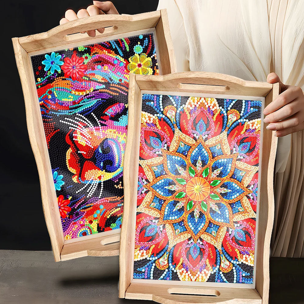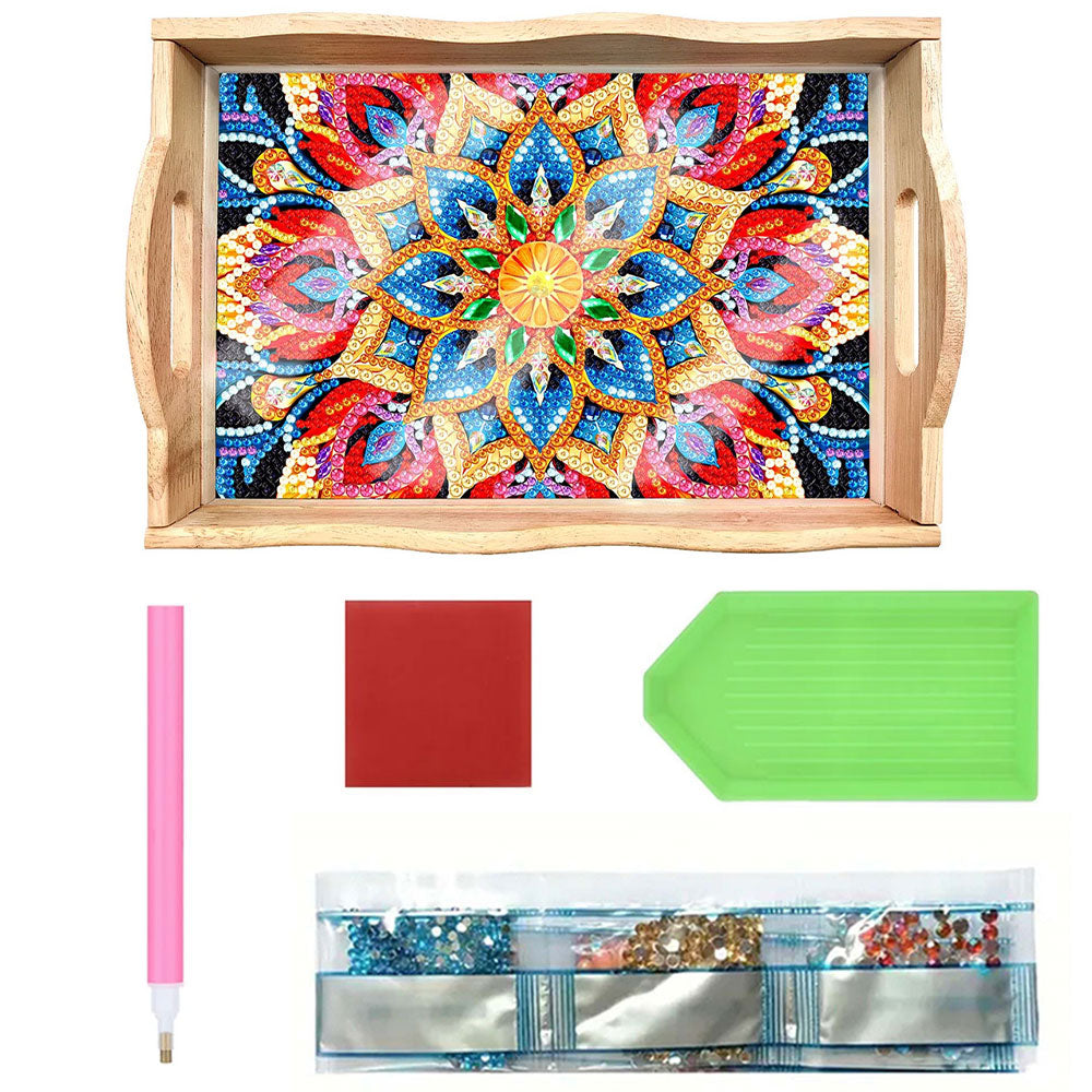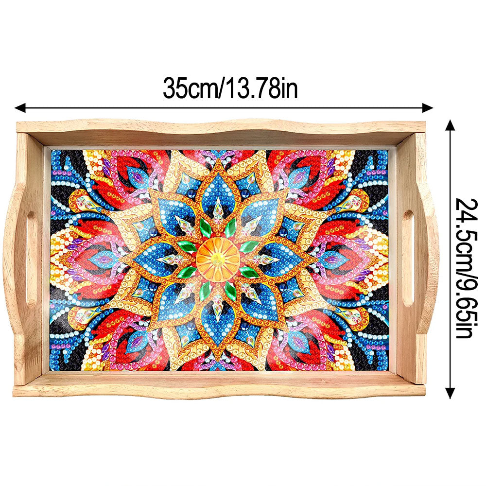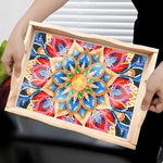 Plateau de Service en Bois Mandala Fleur Dorée et Rouge Broderie Diamant