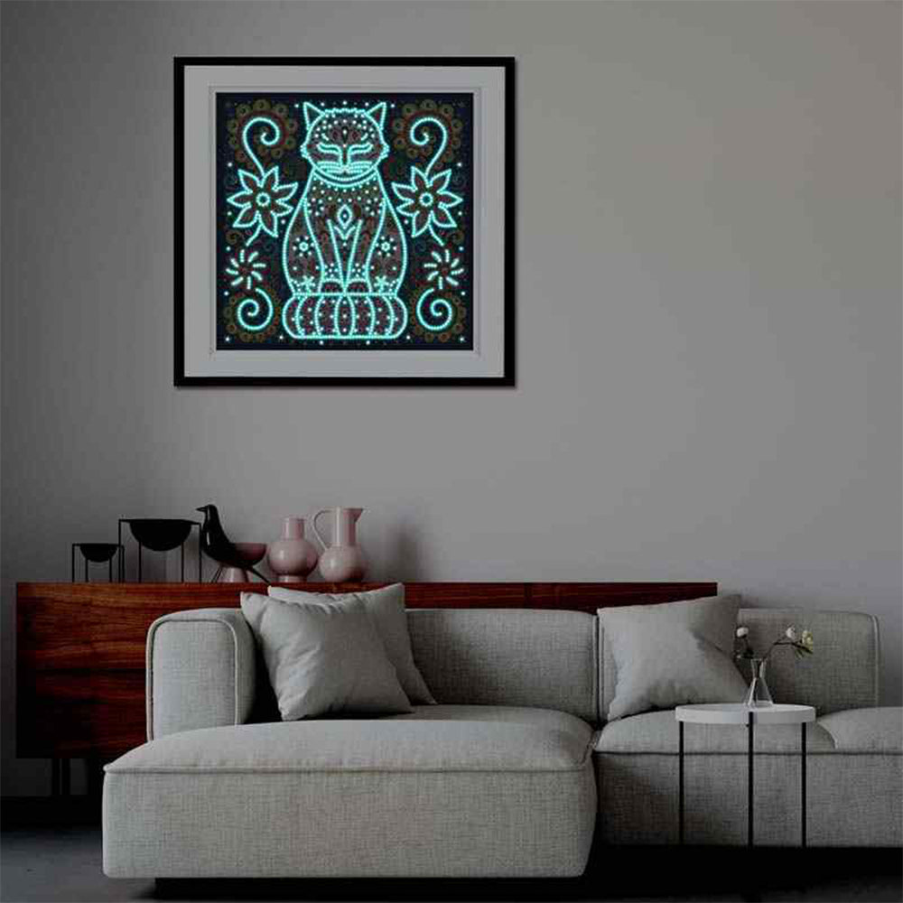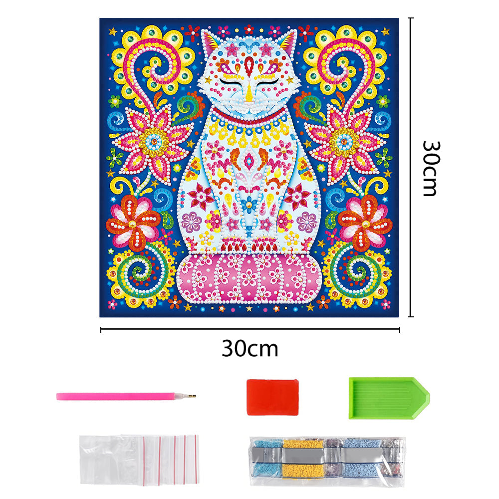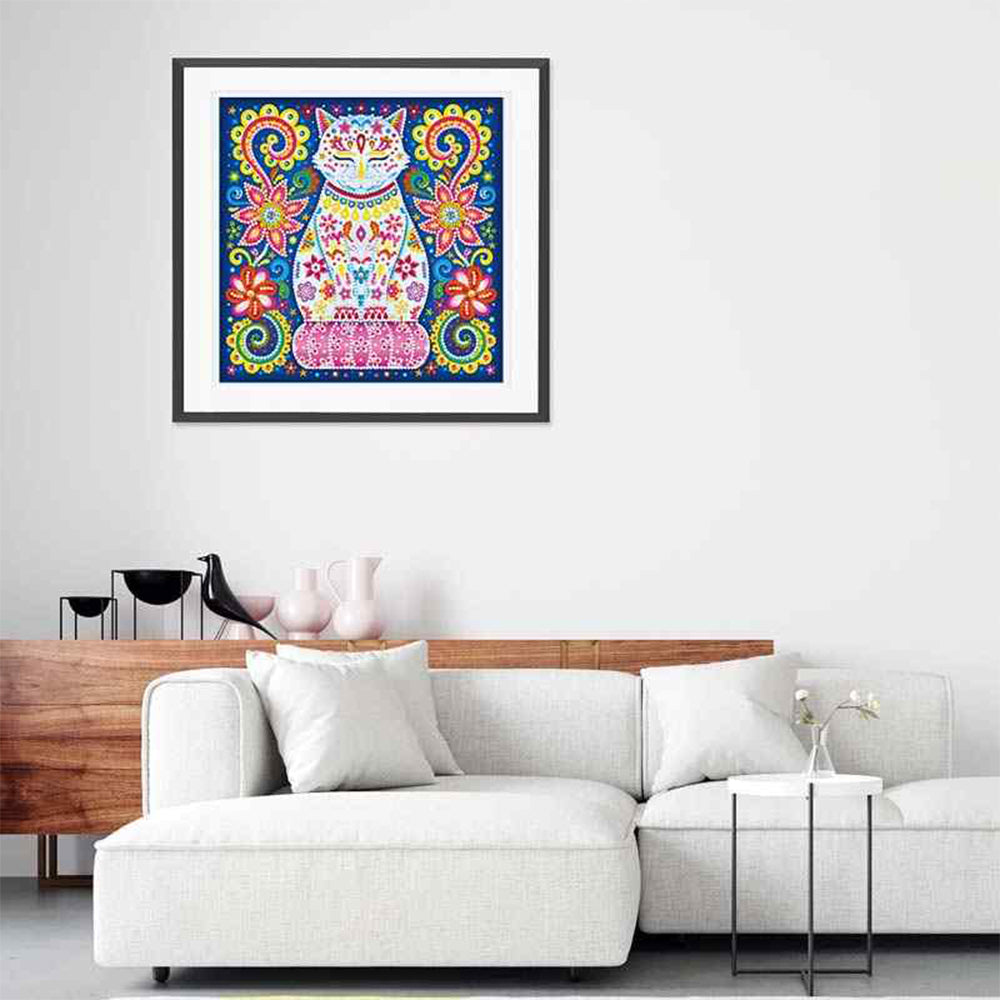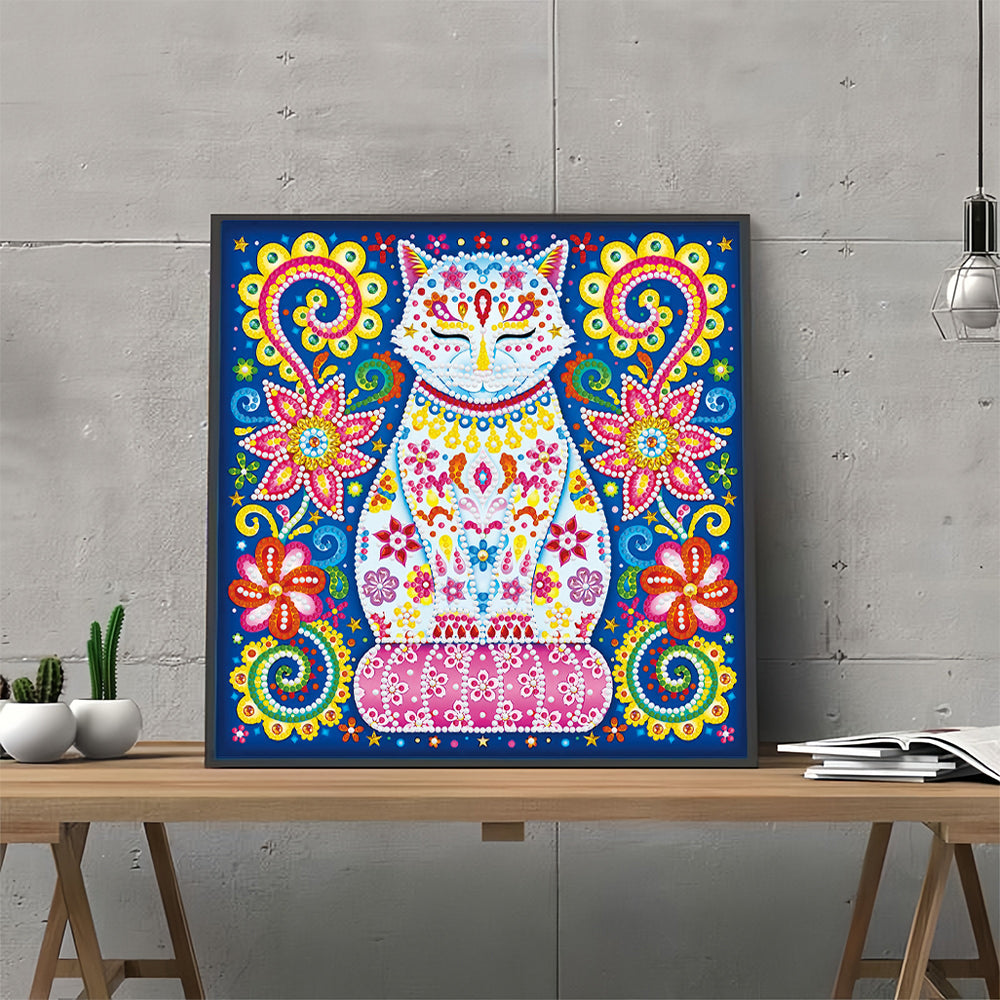 Broderie Diamant Lumineux de Forme Spéciale Chat à Fleur