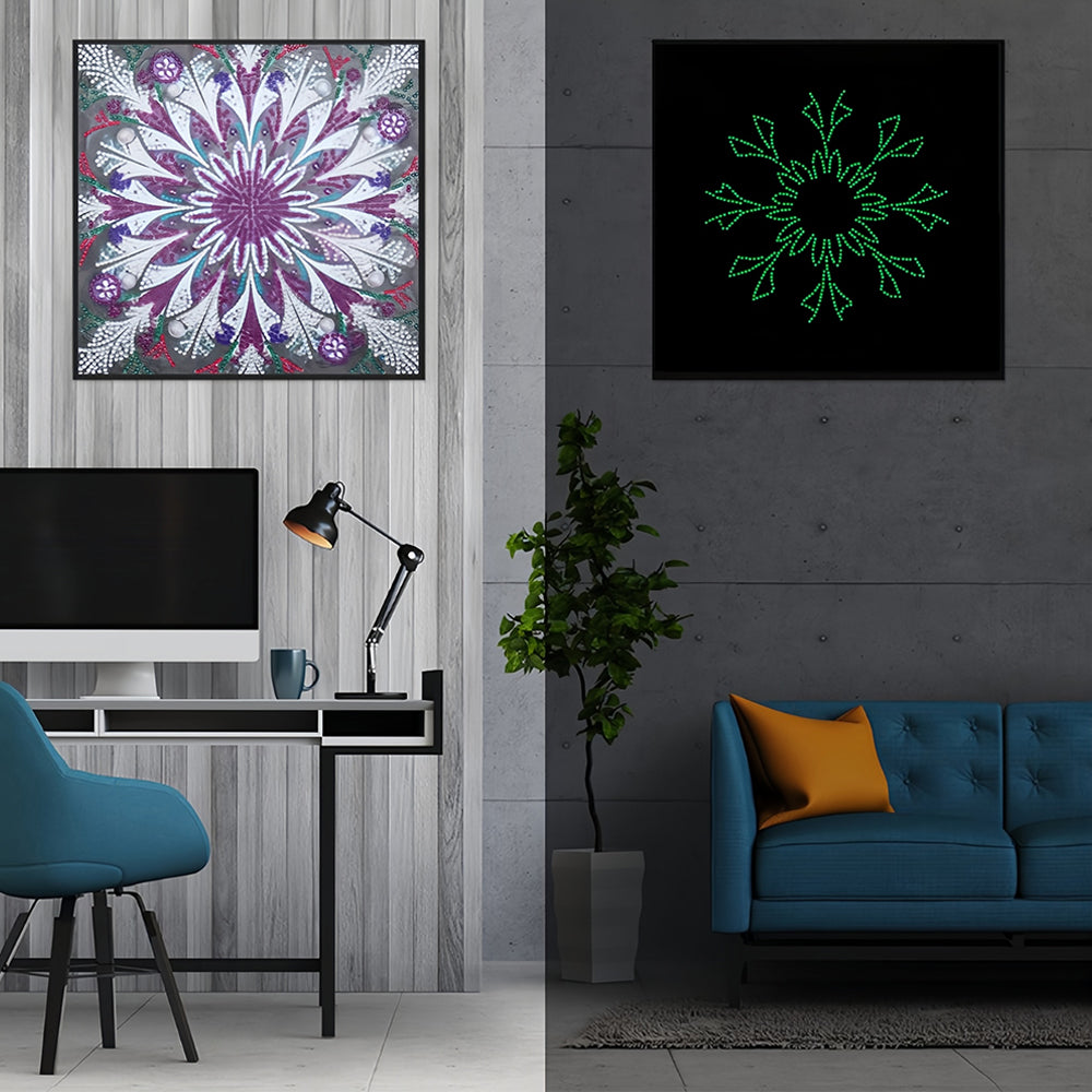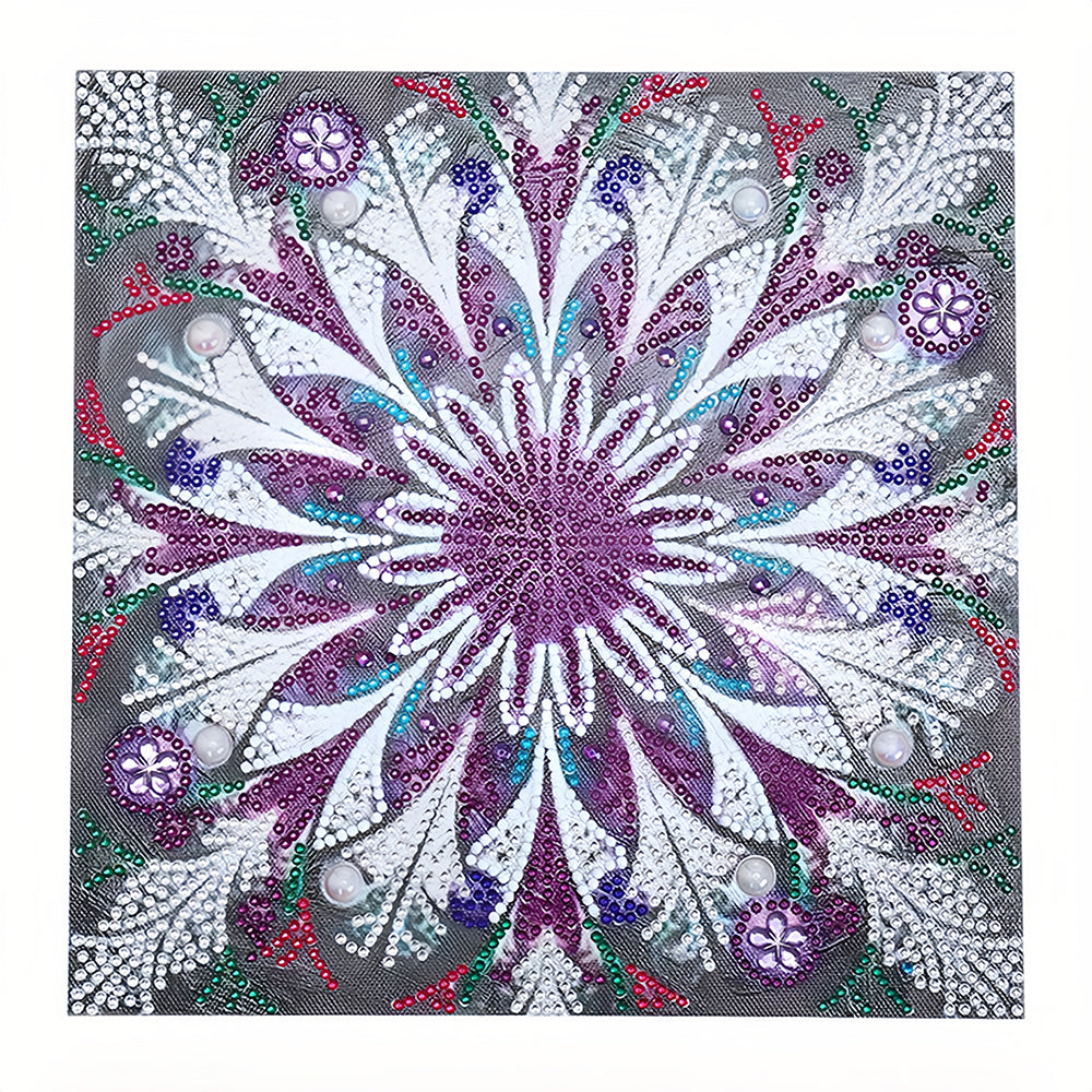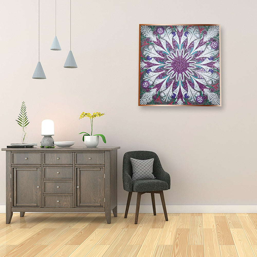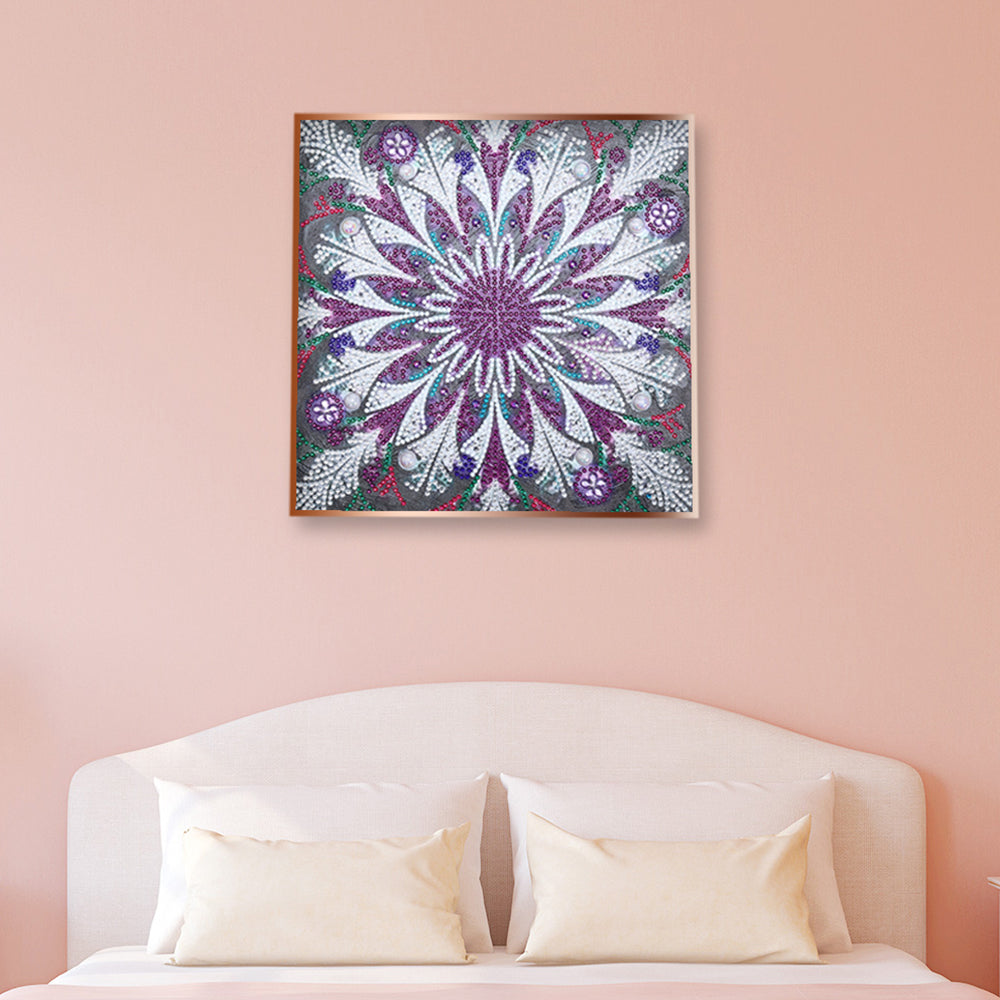 Broderie Diamant Lumineux de Forme Spéciale Mandala Violet et Blanc