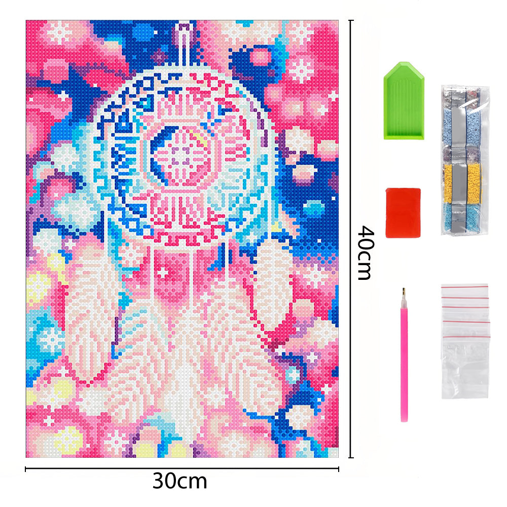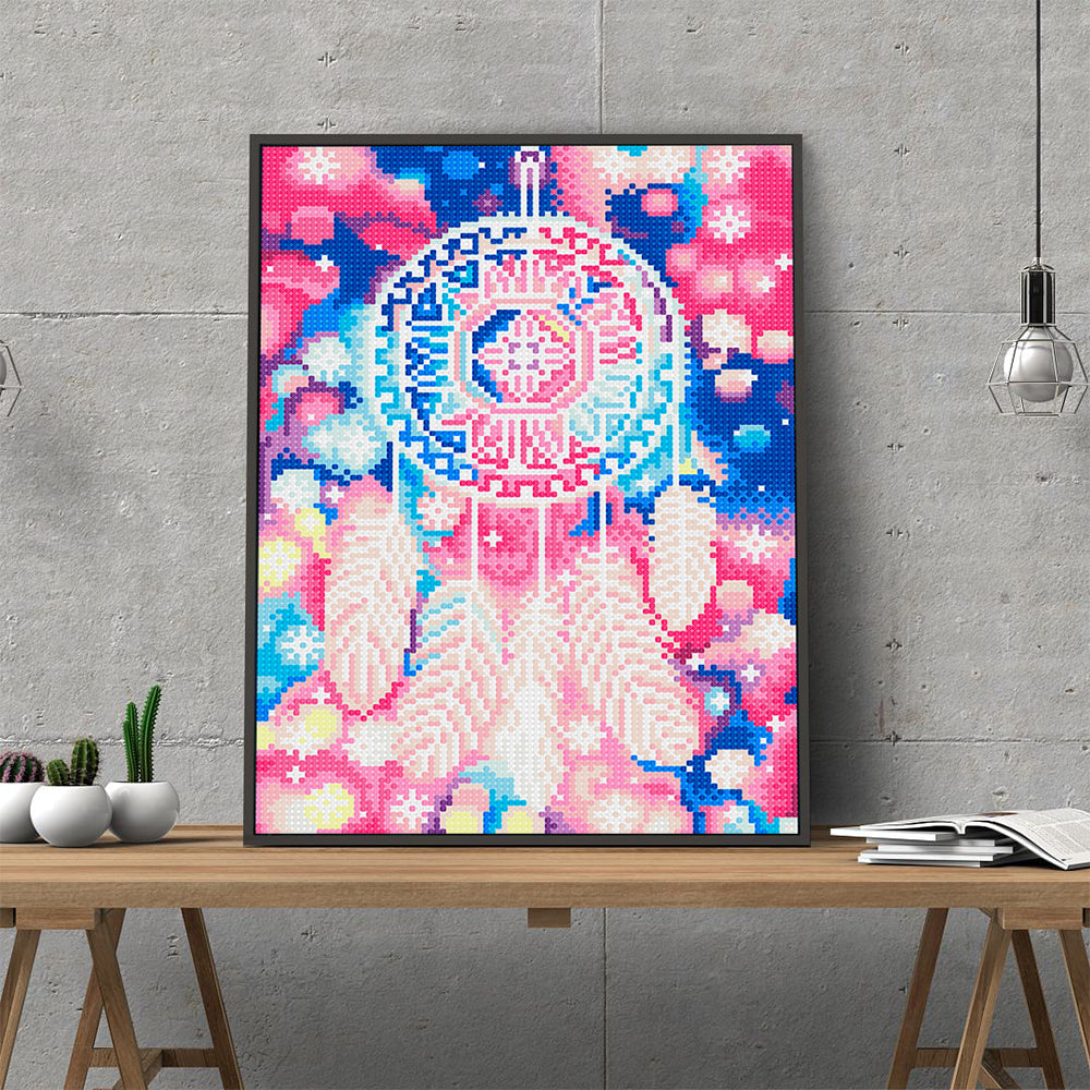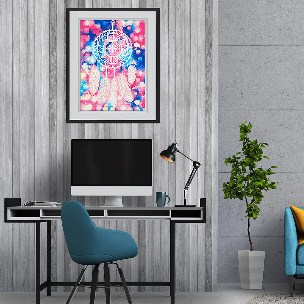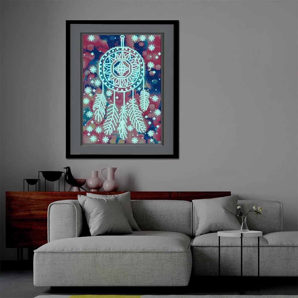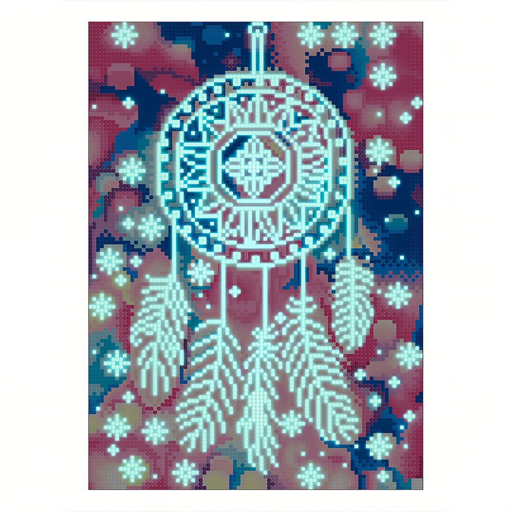 Broderie Diamant Lumineux de Strass en Cristal Capteur de Rêves en Plume