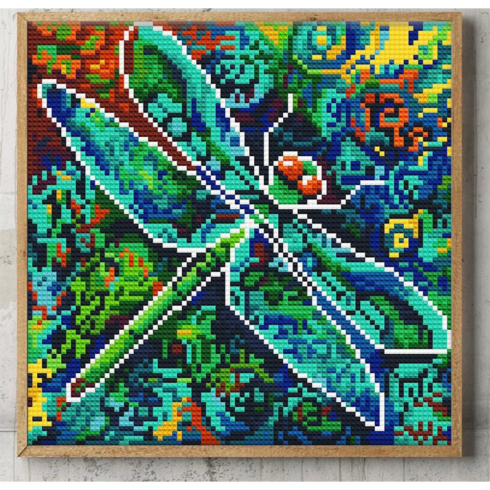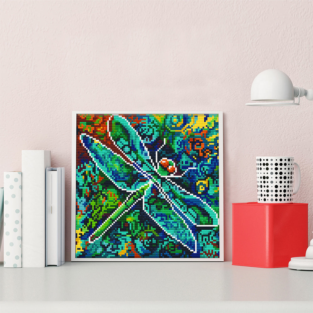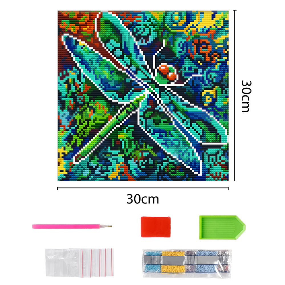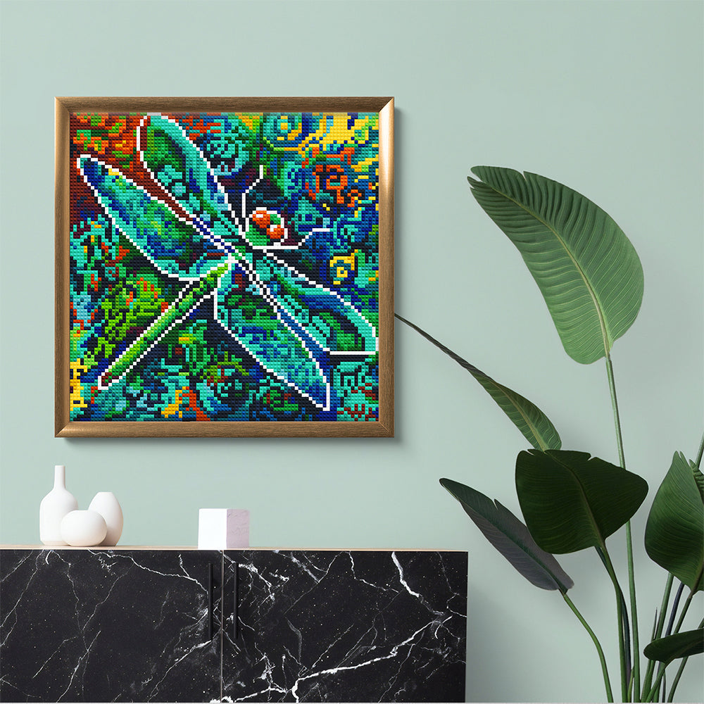 Broderie Diamant Lumineux de Strass en Cristal Libellule Verte