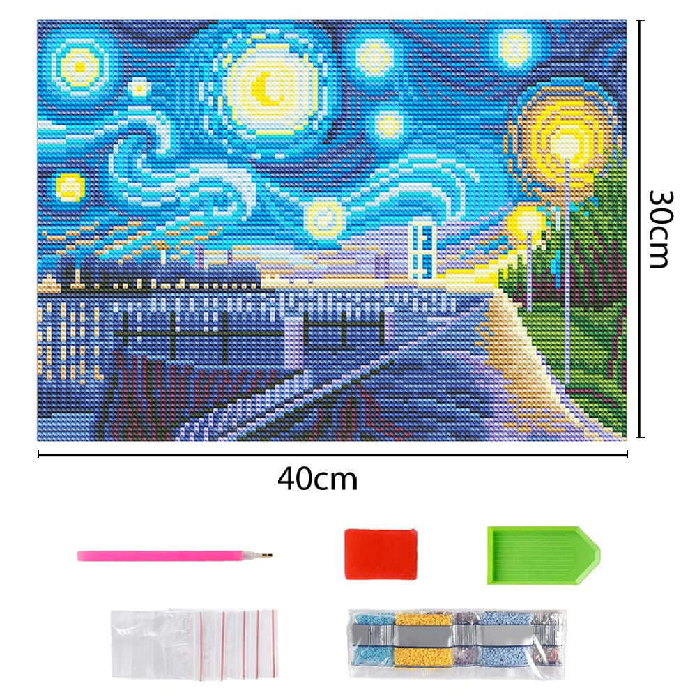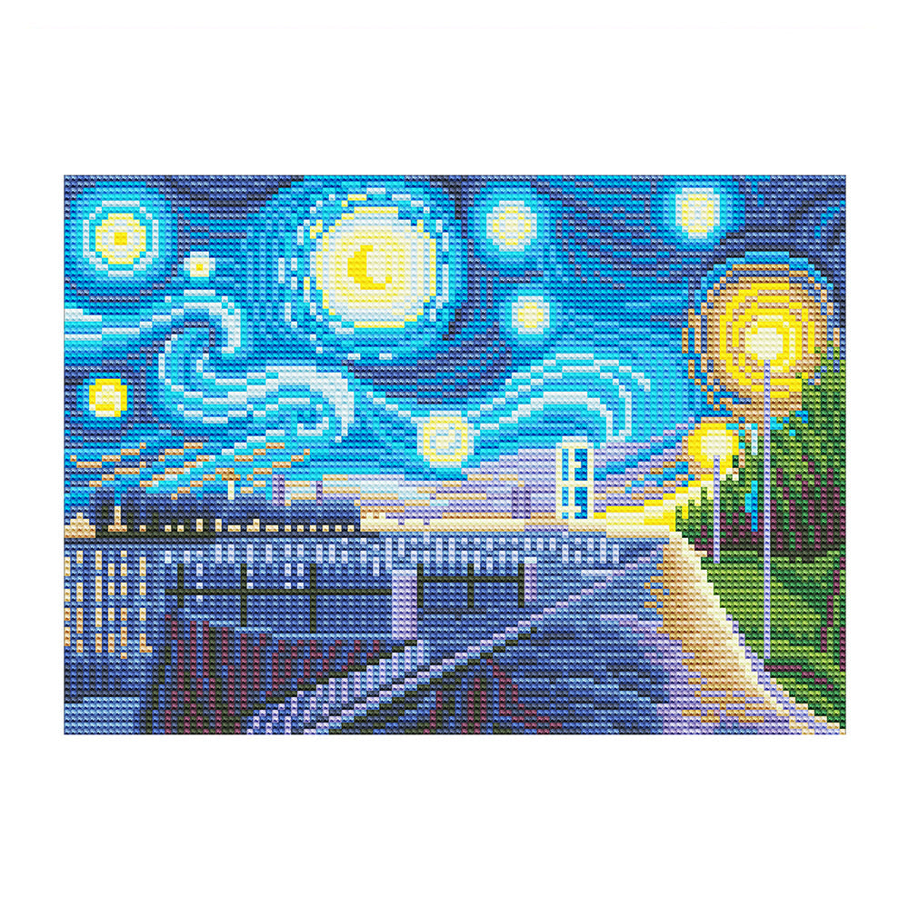 Broderie Diamant Lumineux de Strass en Cristal Nuit Étoilée Abstraite