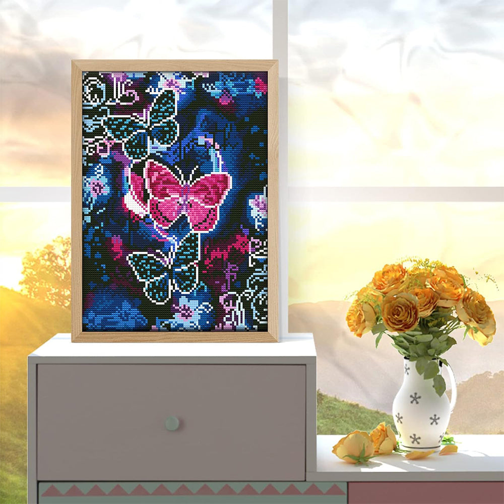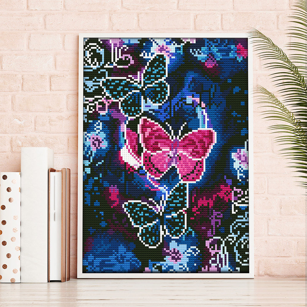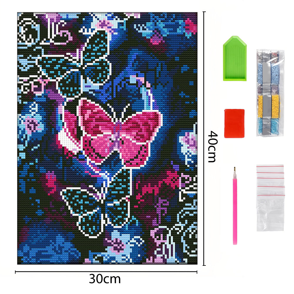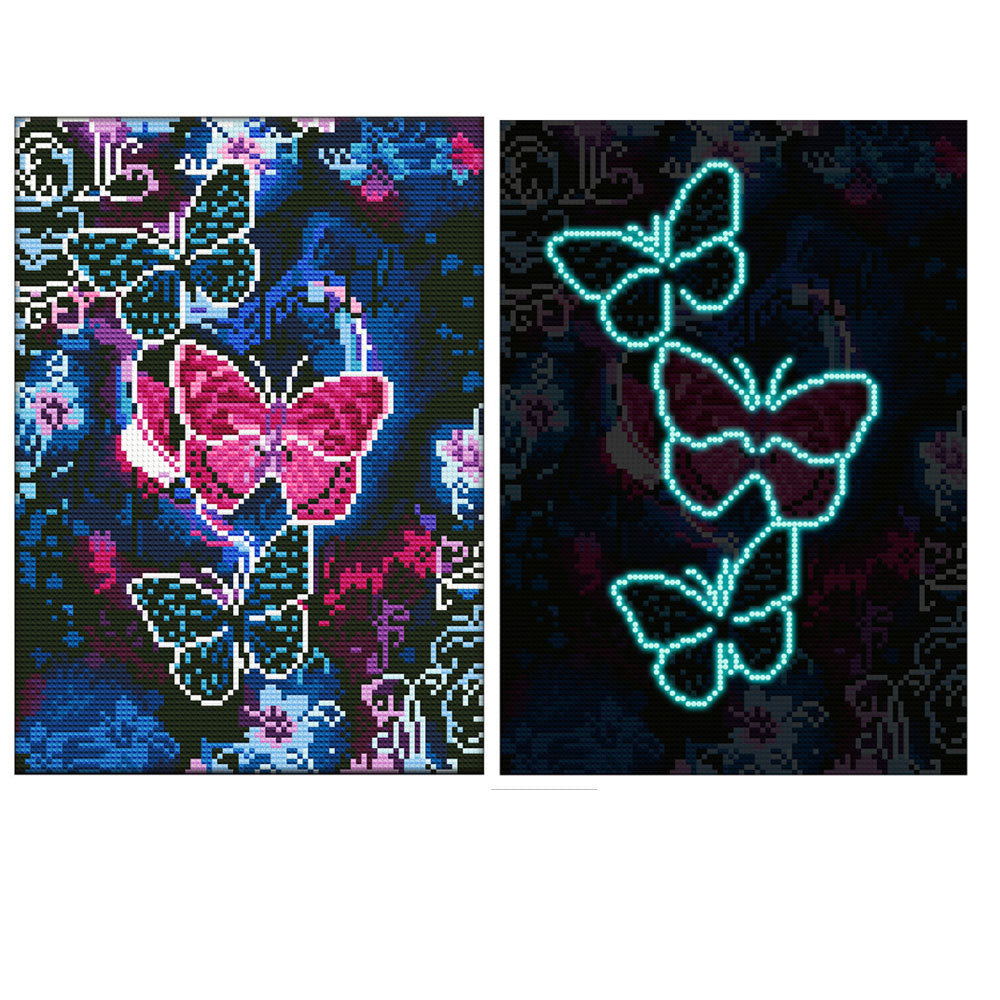 Broderie Diamant Lumineux de Strass en Cristal Papillon Bleu et Rouge