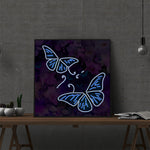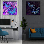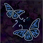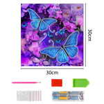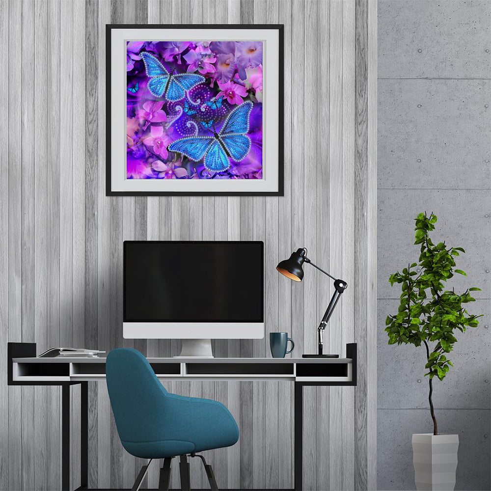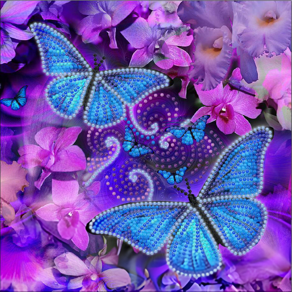 Broderie Diamant Lumineux de Strass en Cristal Papillons Bleus et Fleurs Violettes