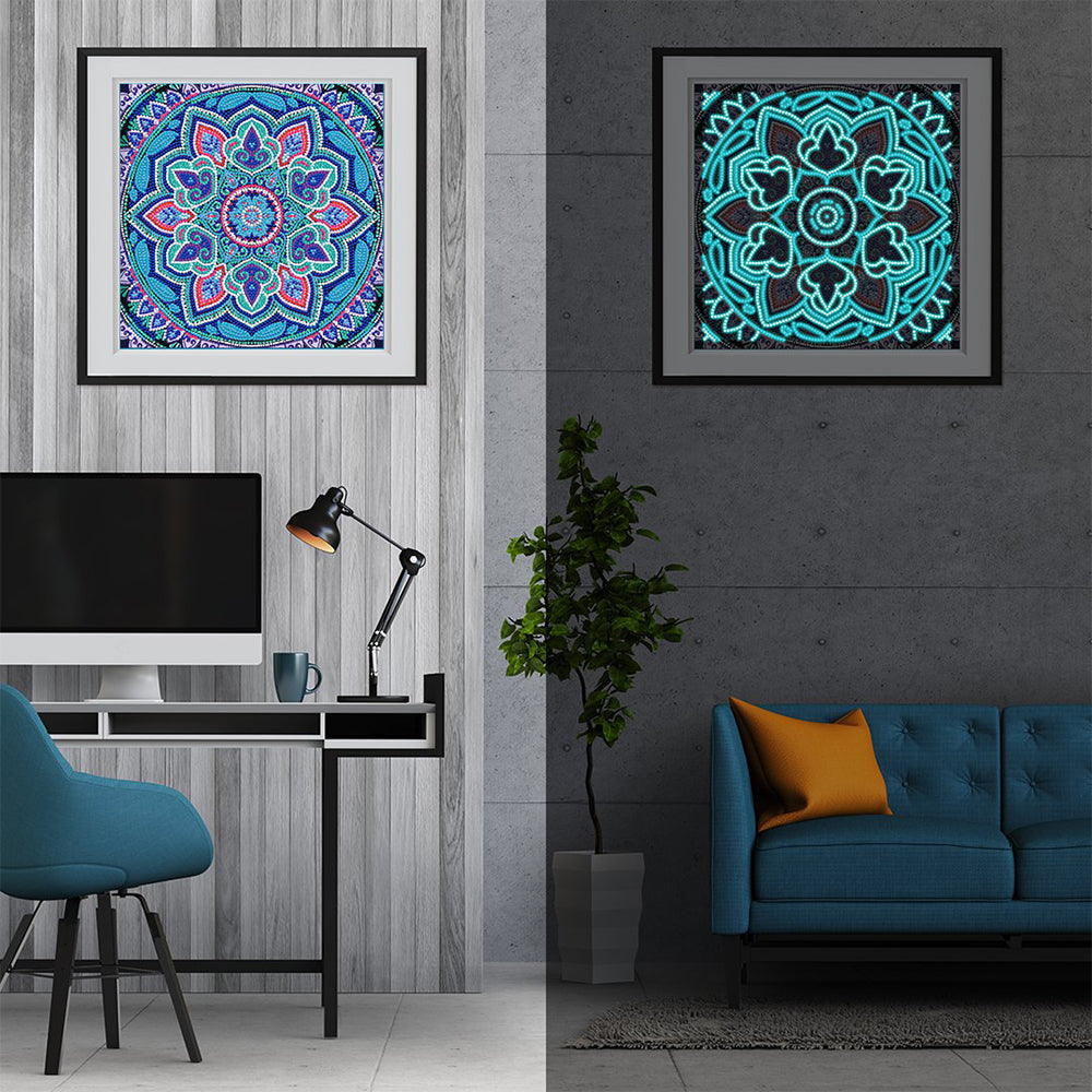 Broderie Diamant Lumineux de Strass en Cristal Rouge et Bleu