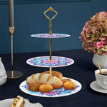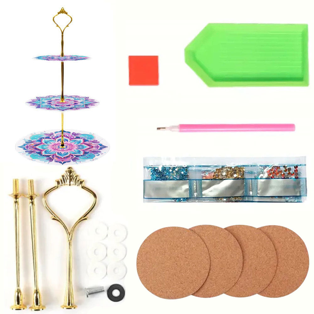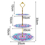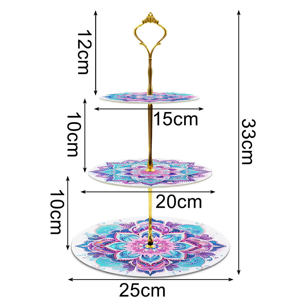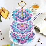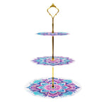 3 Niveaux de Plateau de Service Acrylique Mandala Lotus Rose et Vert Broderie Diamant