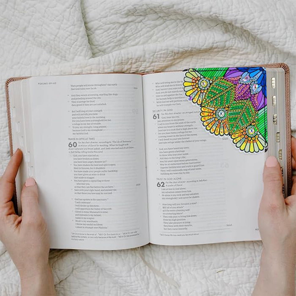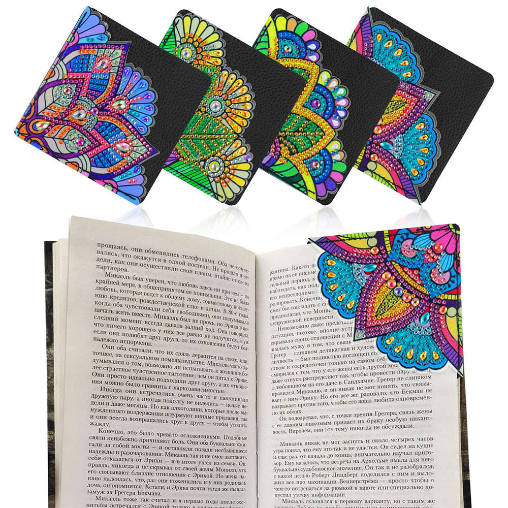 4Pcs de Marque-Pages Avec Coins Protecteurs en PU Mandala Bleu et Vert Broderie Diamant