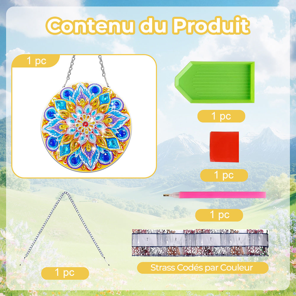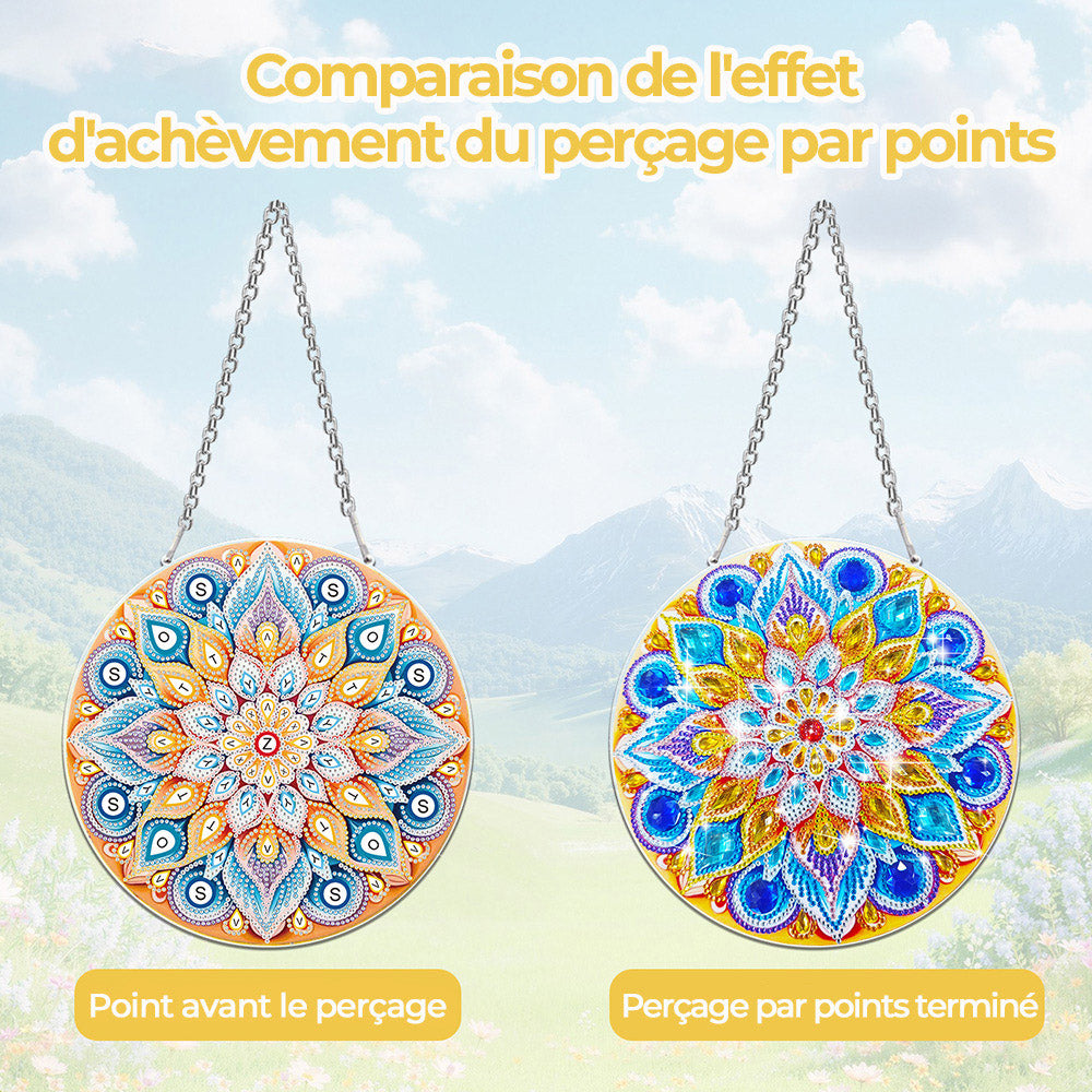 Lotus Mandala Bleu et Or en Acrylique Pendentif Broderie Diamant
