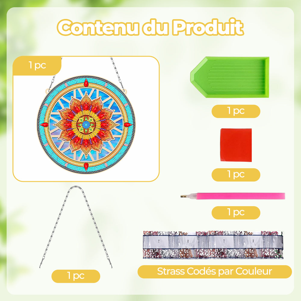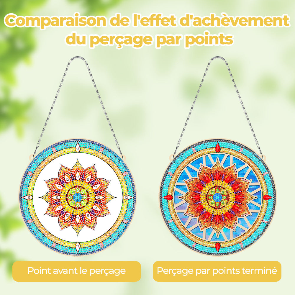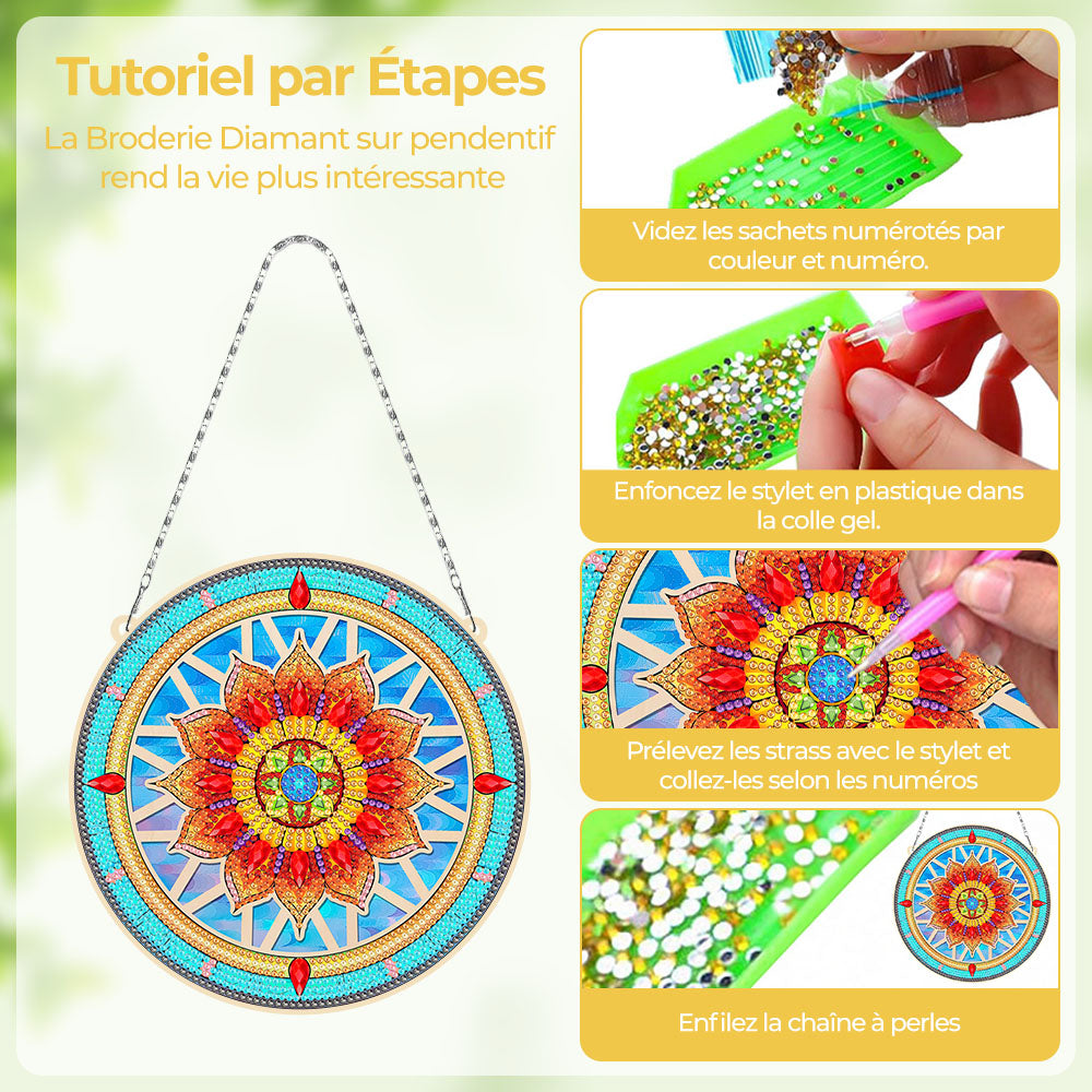 Mandala Lotus Rouge en Acrylique Pendentif Broderie Diamant