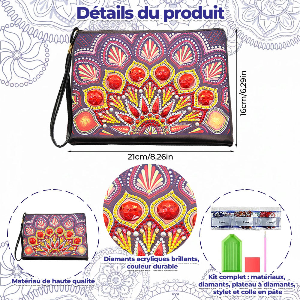 Mandala Rouge Passionné Broderie Diamant Sac Poignet