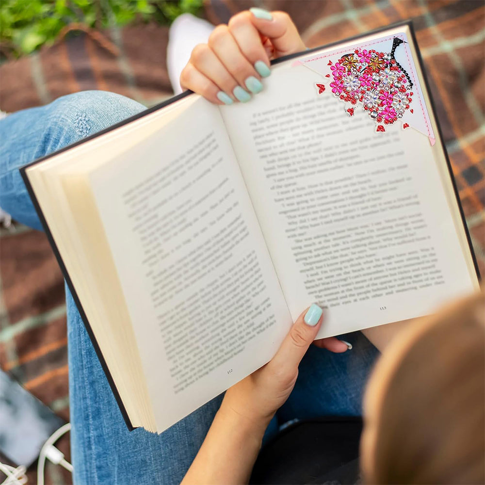 12Pcs de Marque-Pages Avec Coins Protecteurs en PU Arbres des Fleurs Broderie Diamant