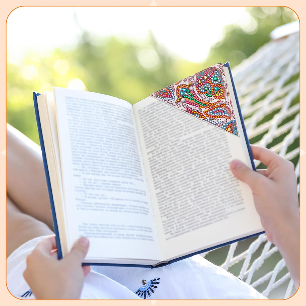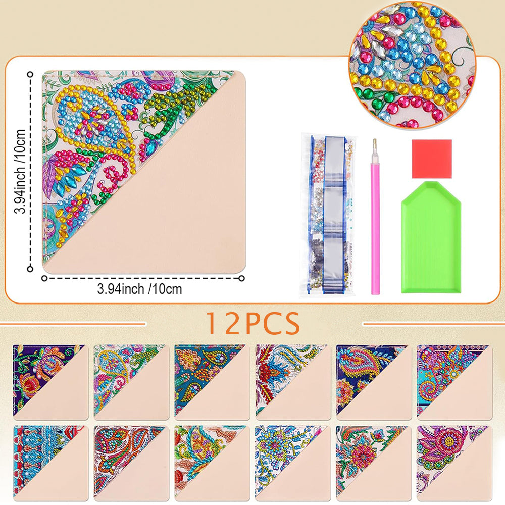 12Pcs de Marque-Pages avec Coins Protecteurs en PU Mandala Plante Broderie Diamant