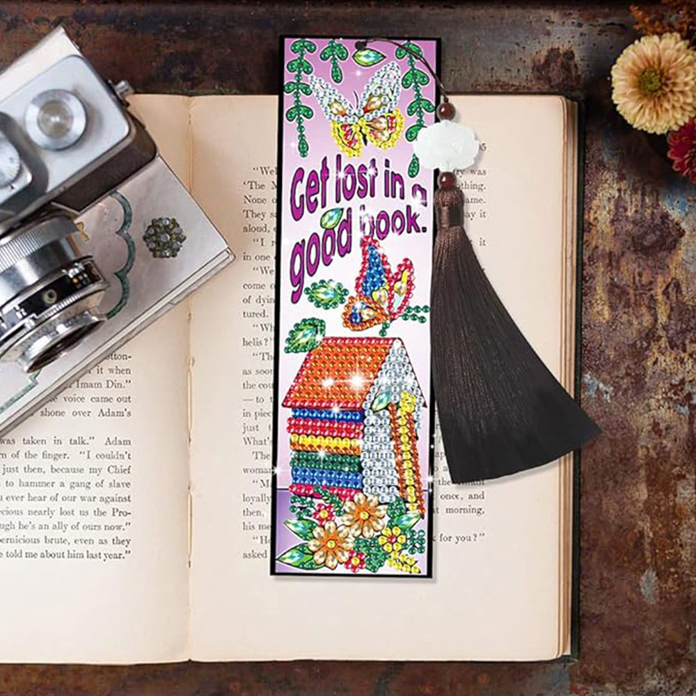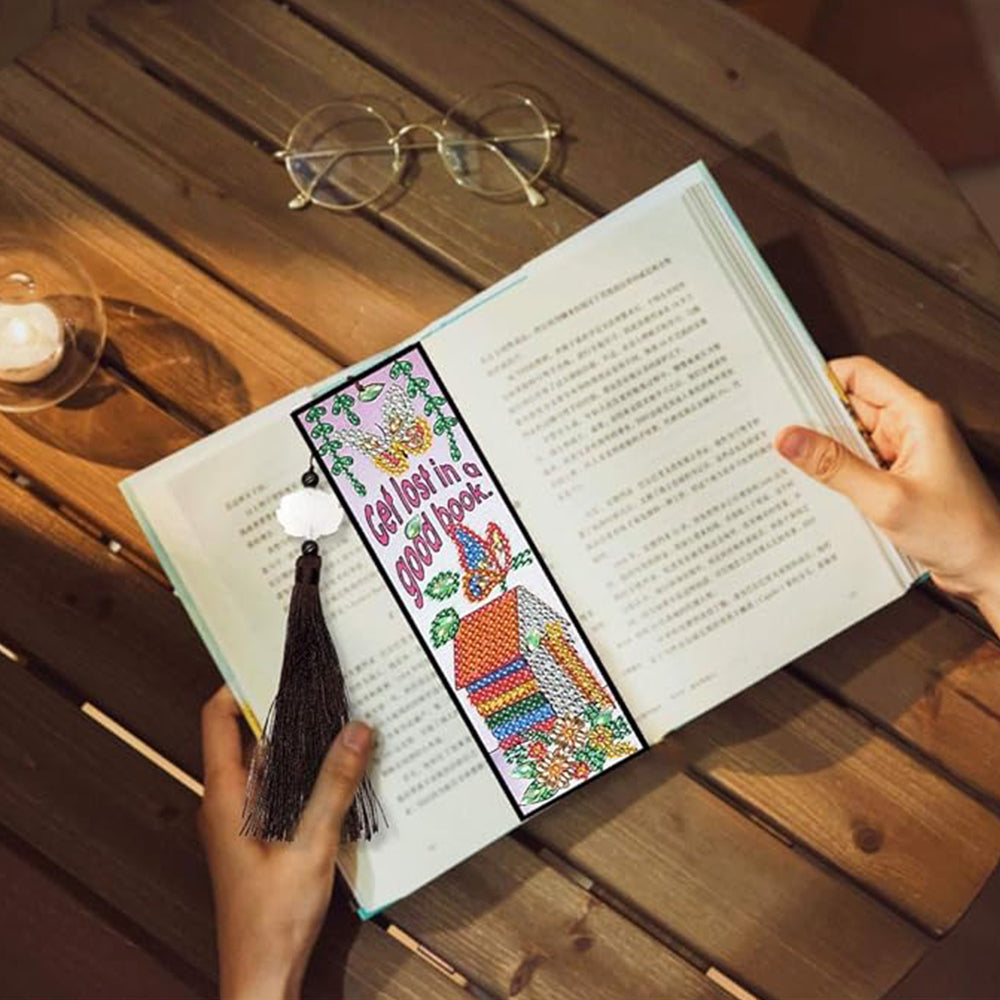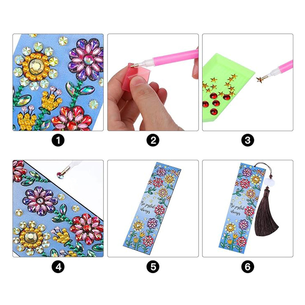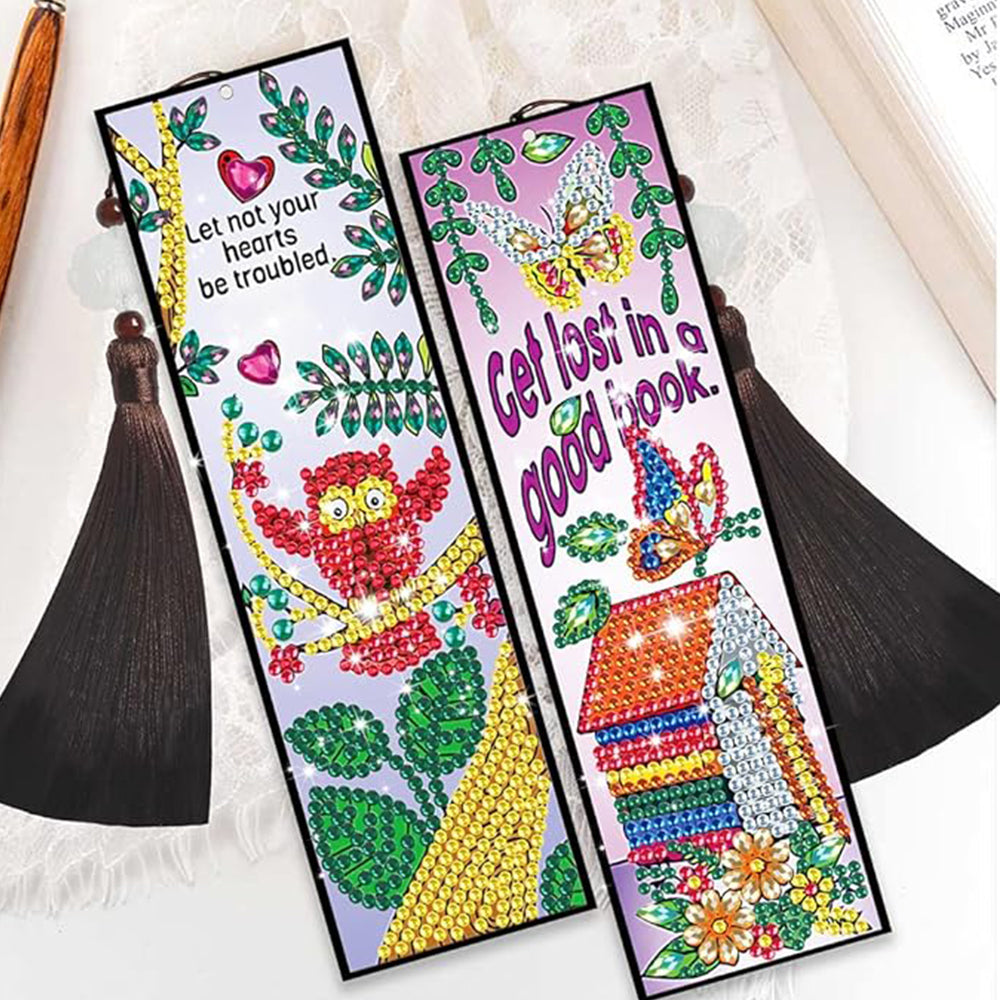3Pcs de Marque-Pages en Cuir Hibou, Nid et Fleurs Broderie Diamant