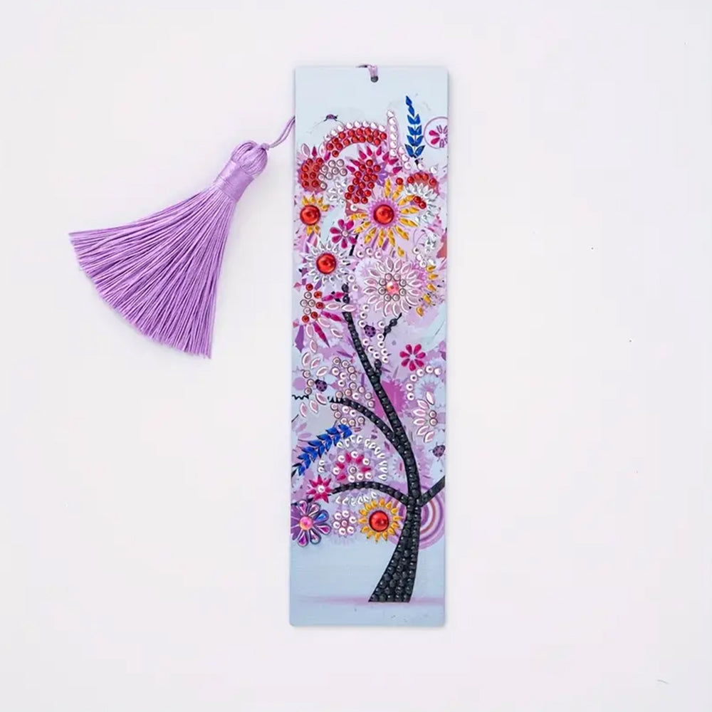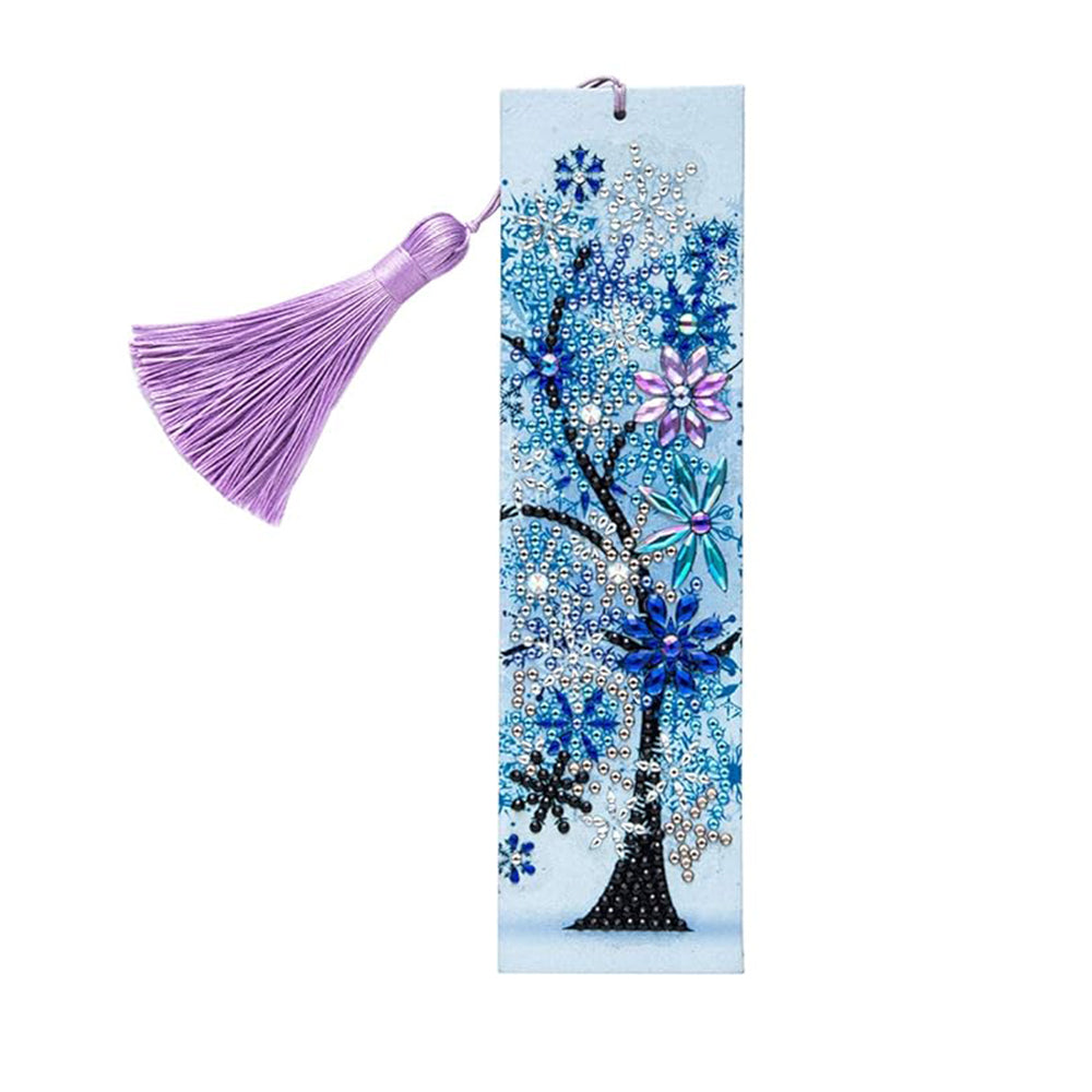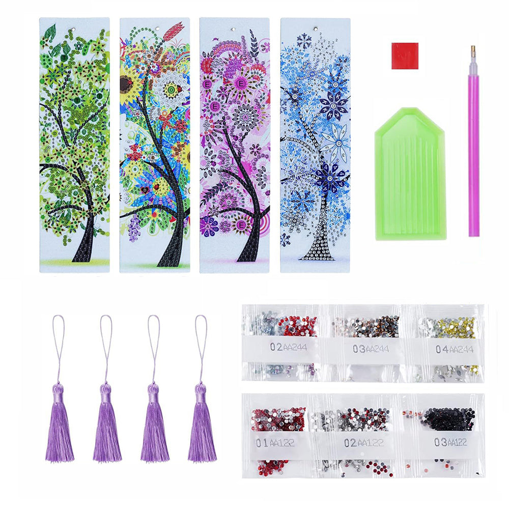4Pcs de Marque-Pages en Cuir Arbre des Quatre Saisons Broderie Diamant