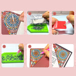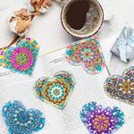8Pcs de Marque-Pages avec Coins Protecteurs en PU Mandala Éblouissant de Forme de Cœur Broderie Diamant
