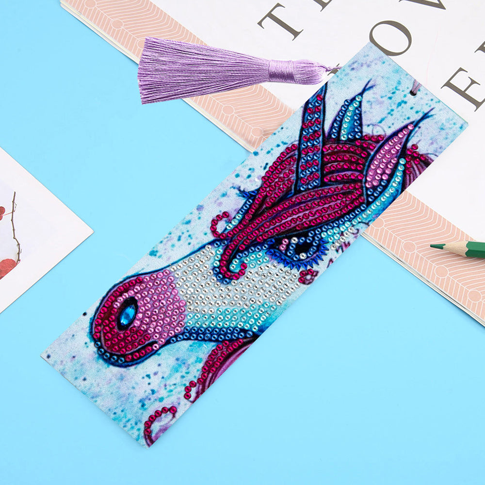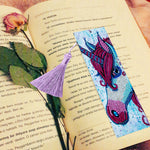 Marque-Pages en Cuir Licorne à Crinière Rouge Broderie Diamant