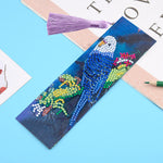 Marque-Pages en Cuir Perroquet Bleu Broderie Diamant