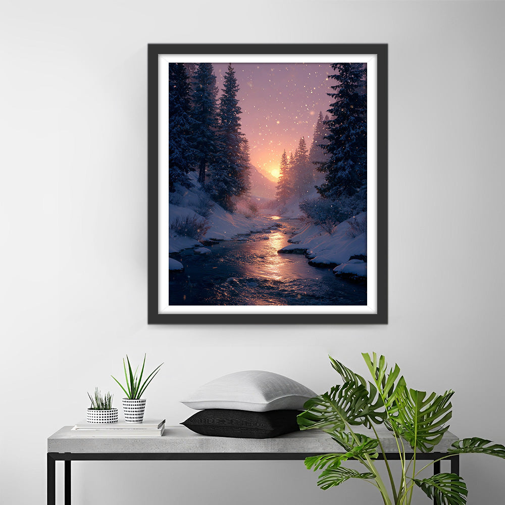 Forêt et Rivière dans la Neige Broderie Diamant