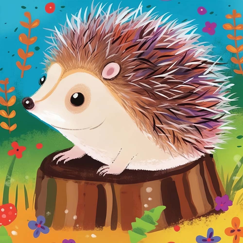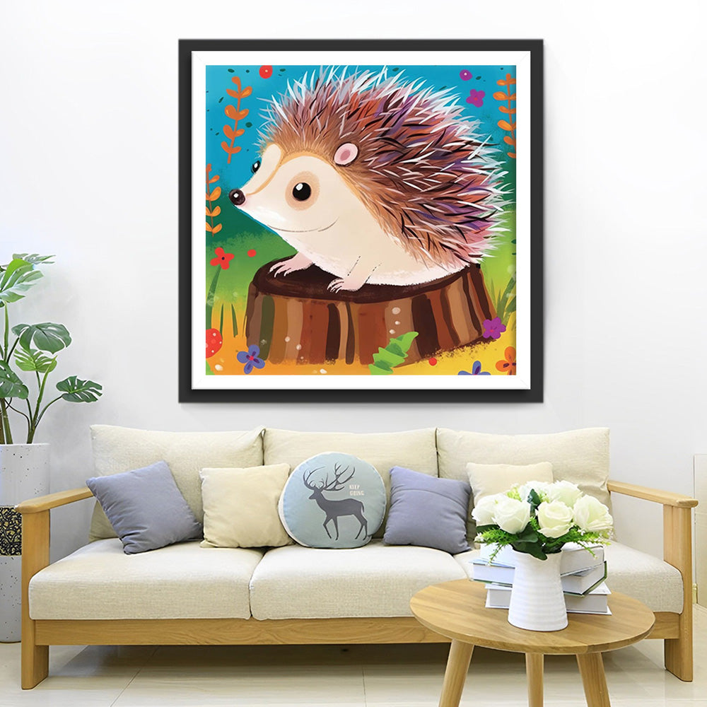 Herisson sur une Souche d'Arbre Broderie Diamant