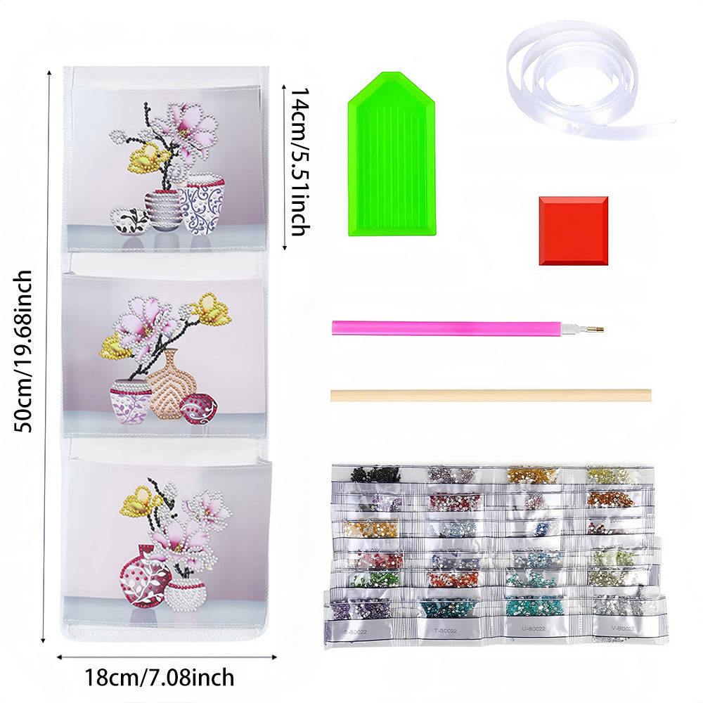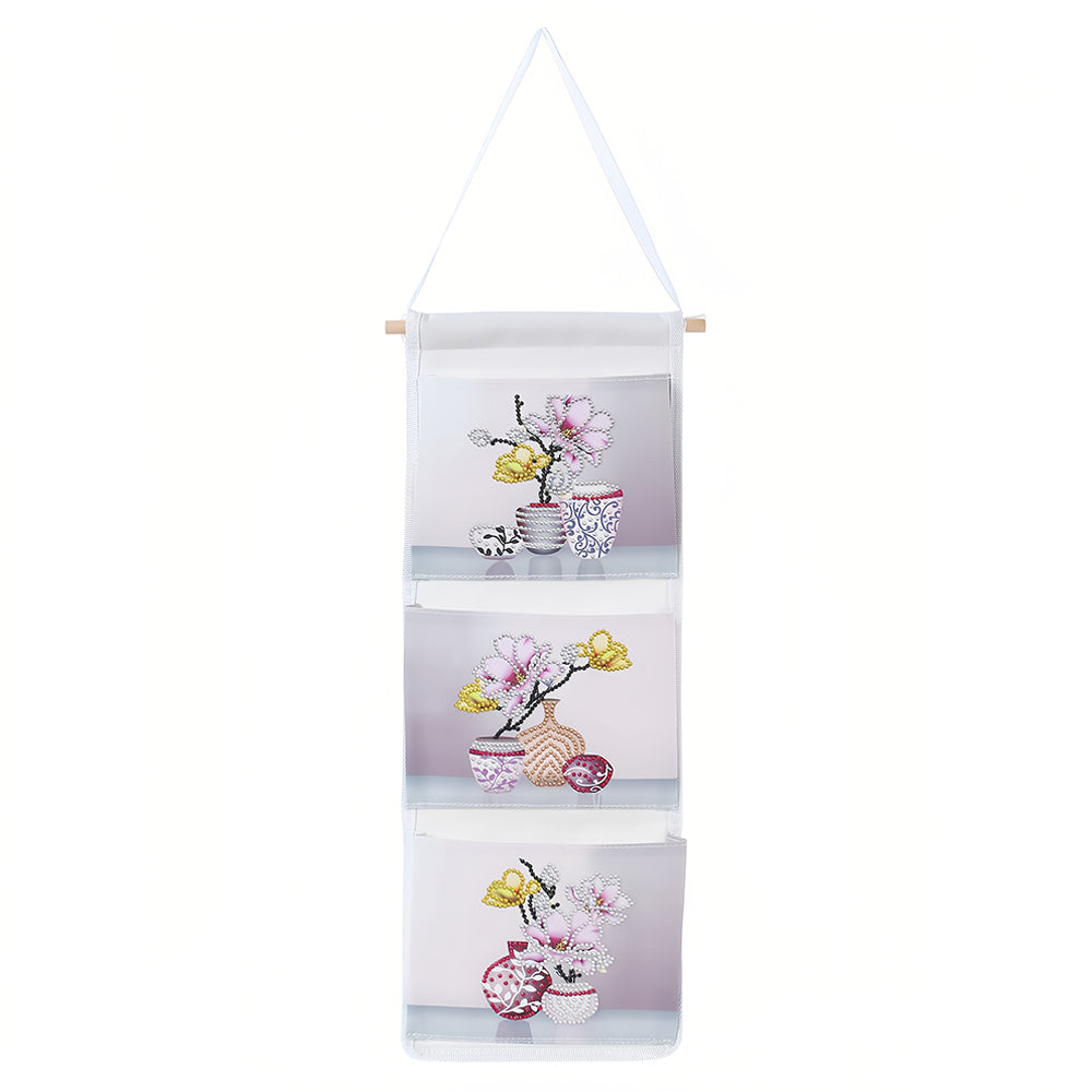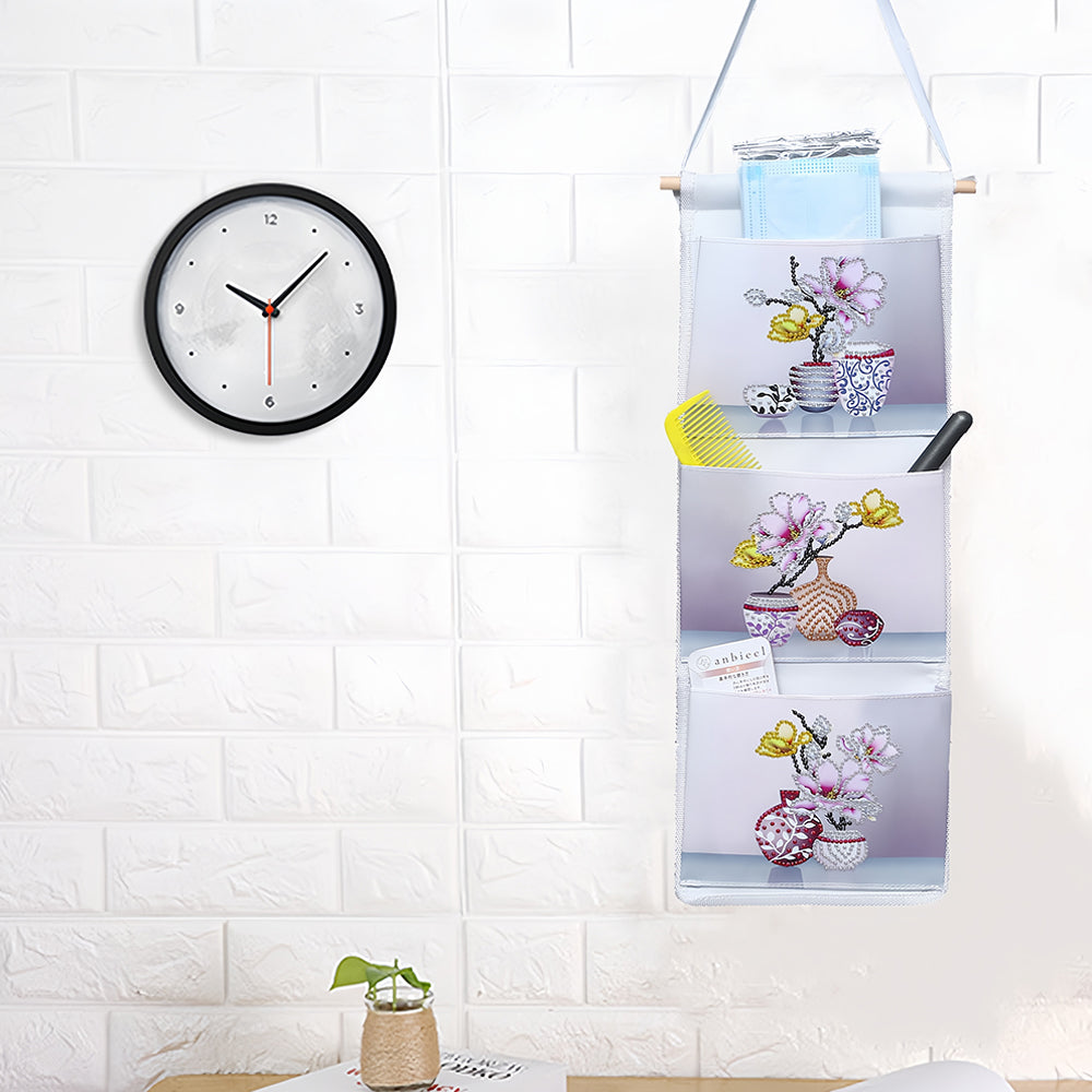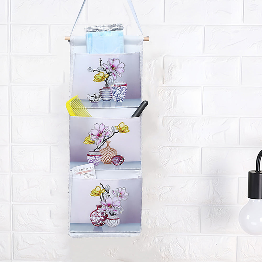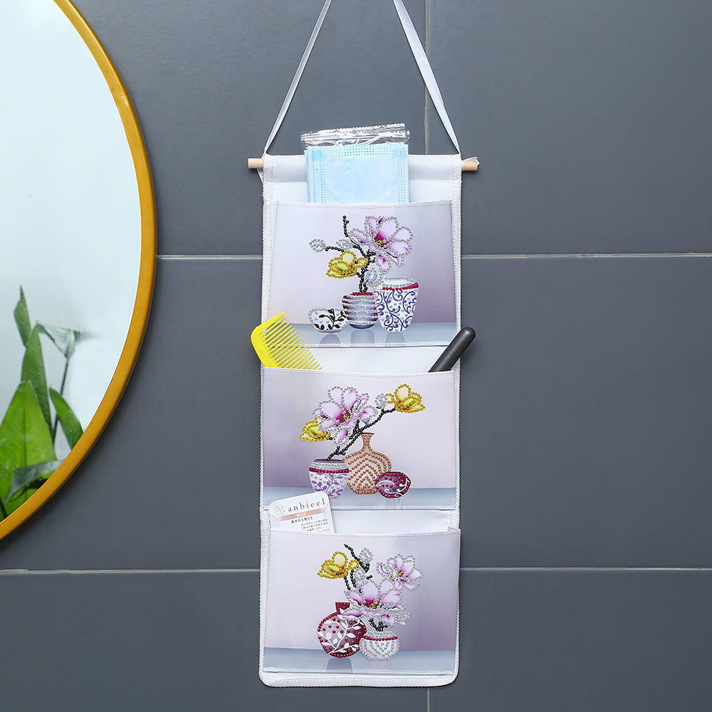 Orchidée Rose Maison Organisateur Sac de Rangement Suspendu Broderie Diamant