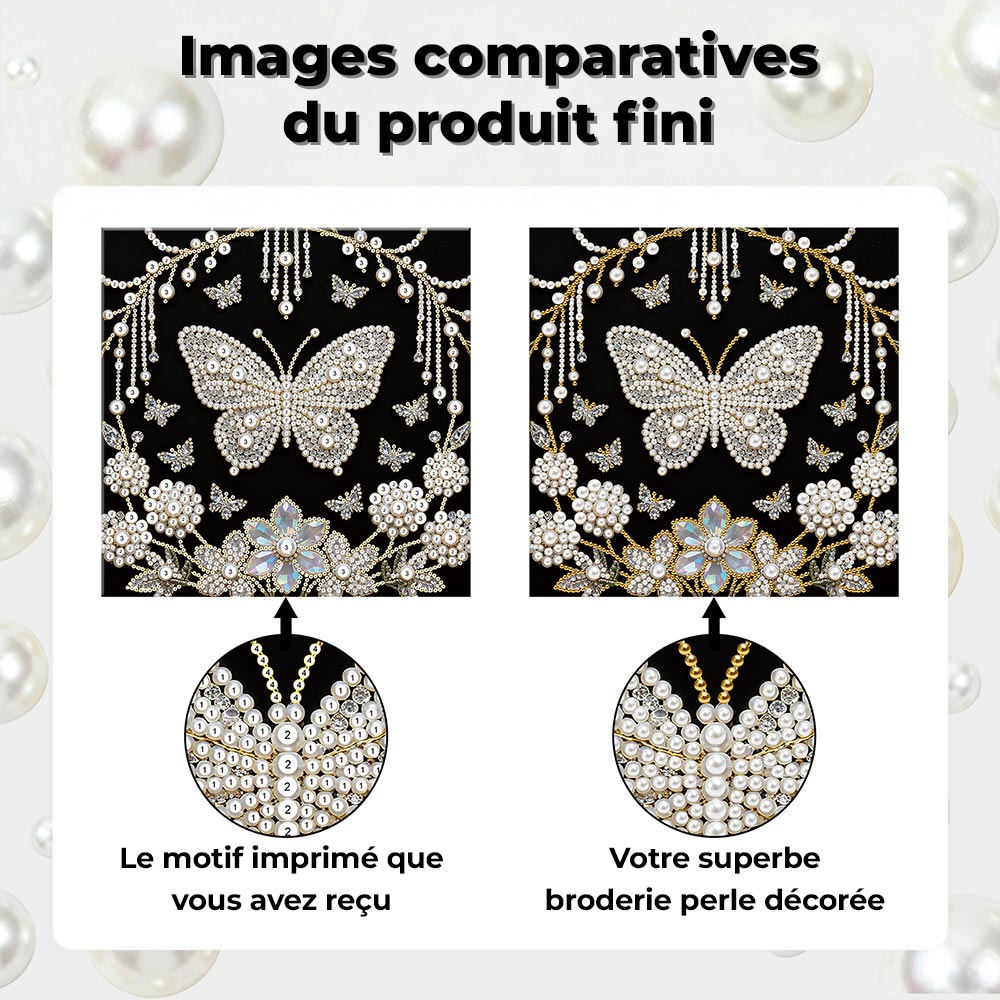 Broderie Diamant | Broderie Perle | Papillon Blanc et Pissenlits