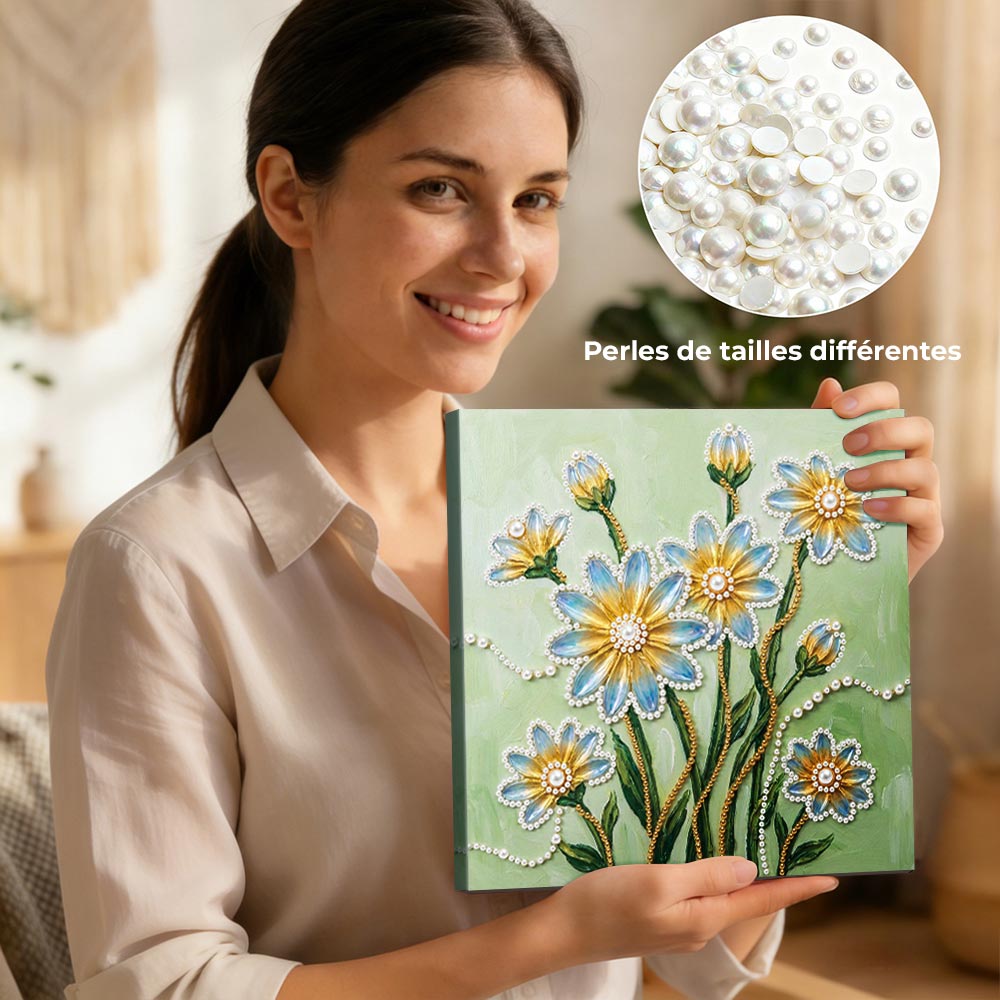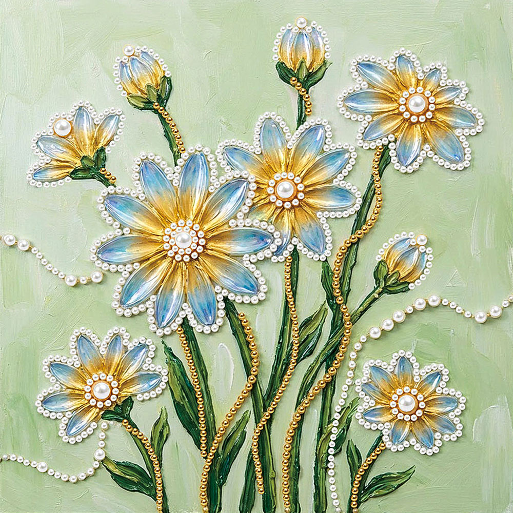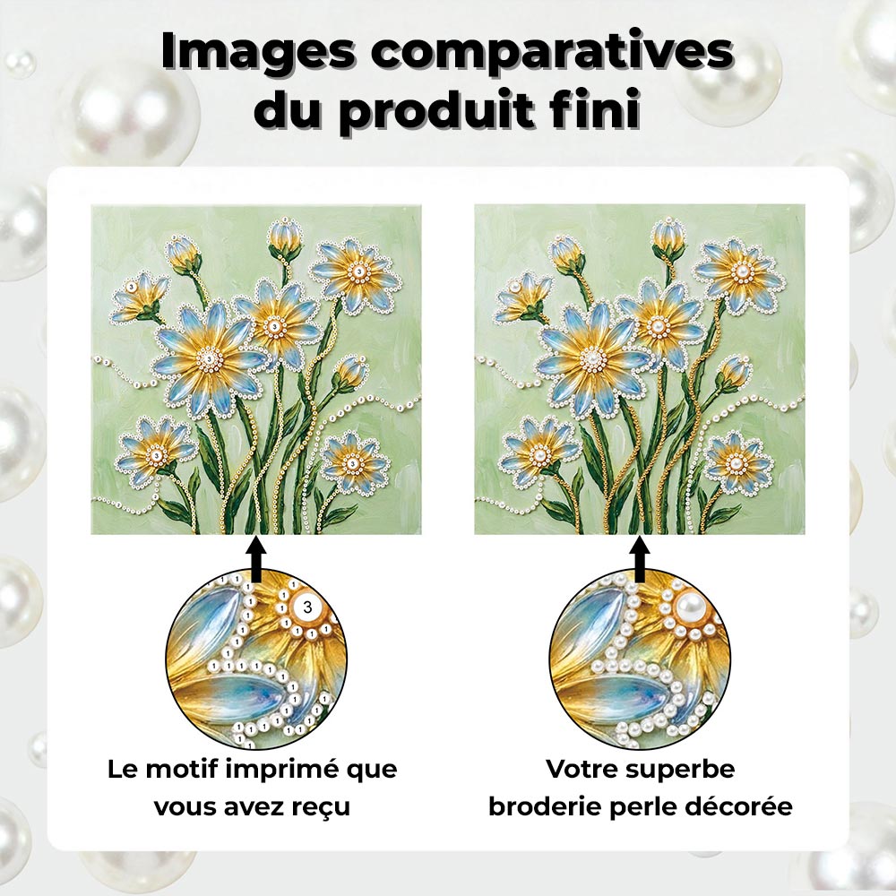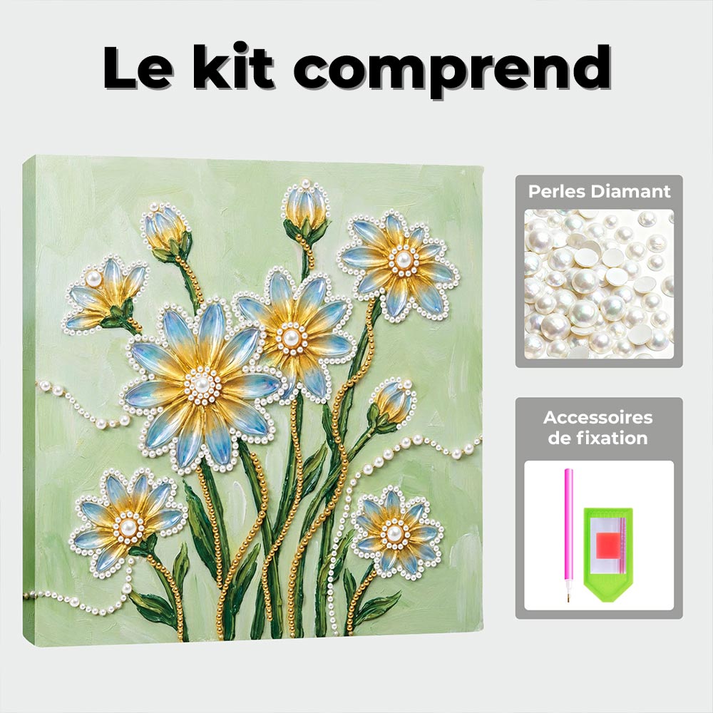 Broderie Diamant | Broderie Perle | Fleurs de Marguerite Bleues et Jaunes