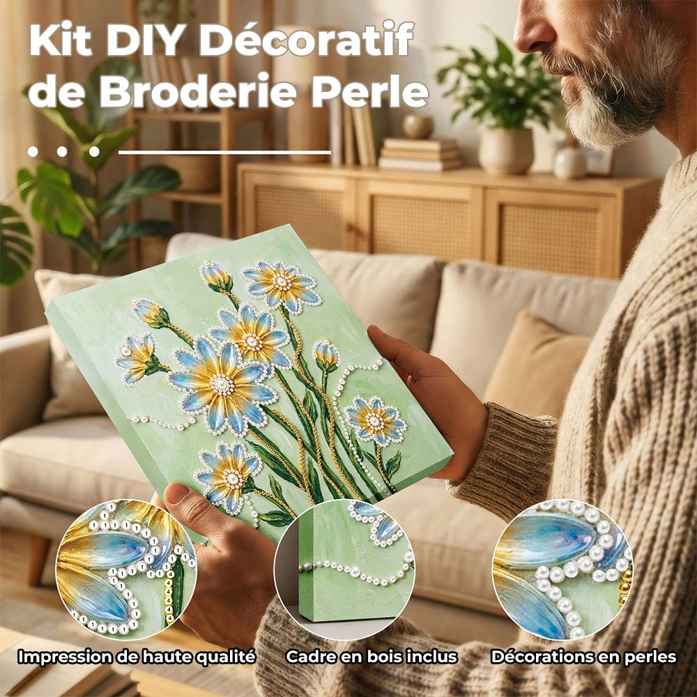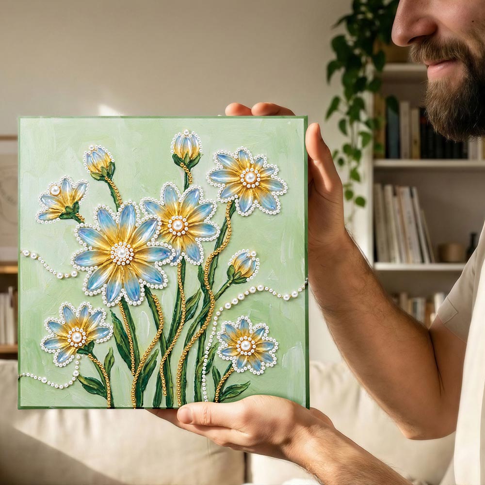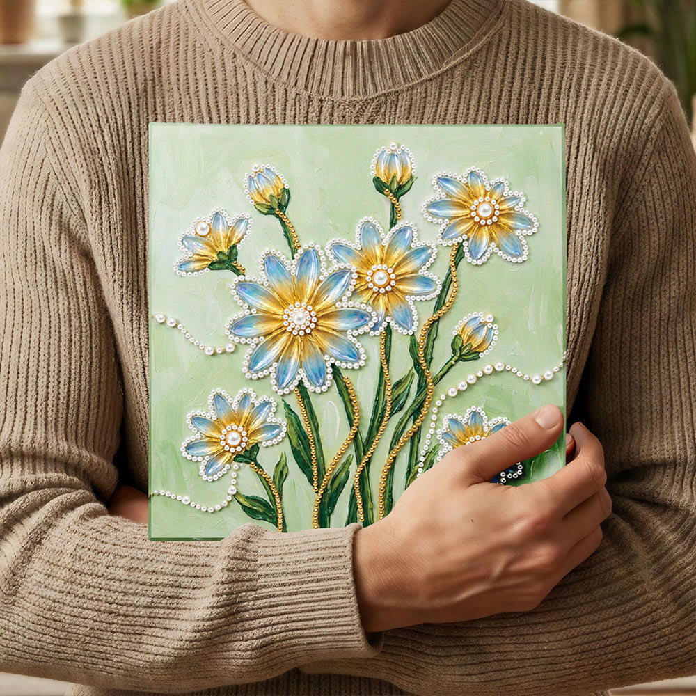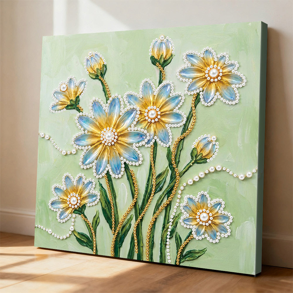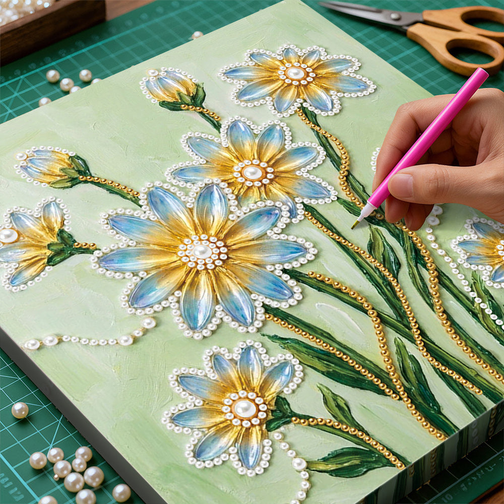 Broderie Diamant | Broderie Perle | Fleurs de Marguerite Bleues et Jaunes