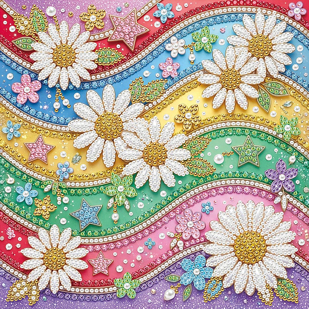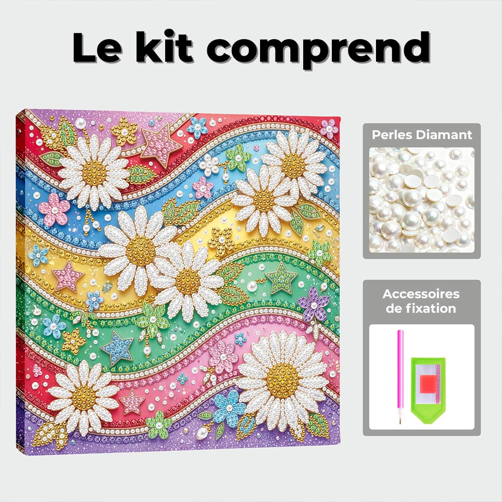 Broderie Diamant | Broderie Perle | Marguerites, Arcs-en-Ciel et Étoiles