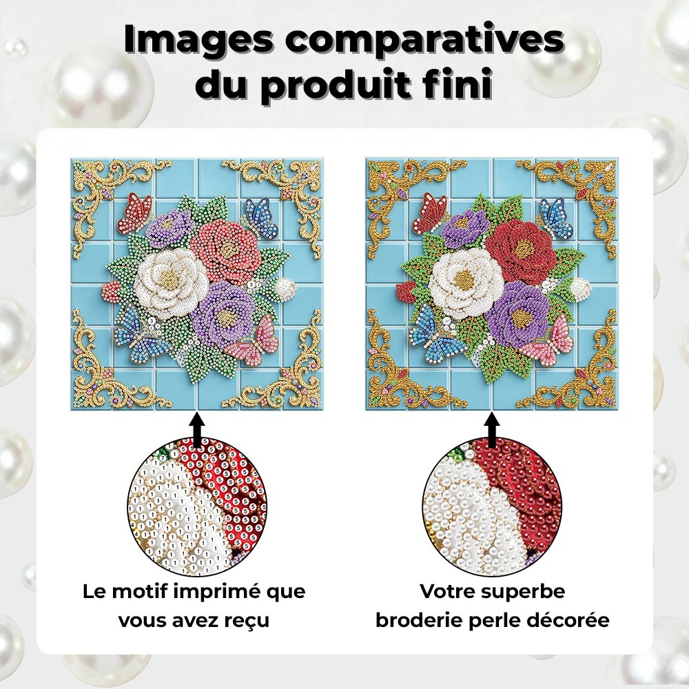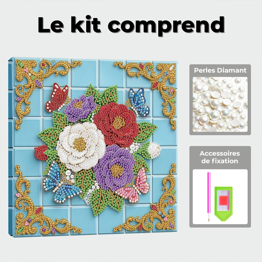 Broderie Diamant | Broderie Perle | Papillons Tourbillonnant autour des Roses