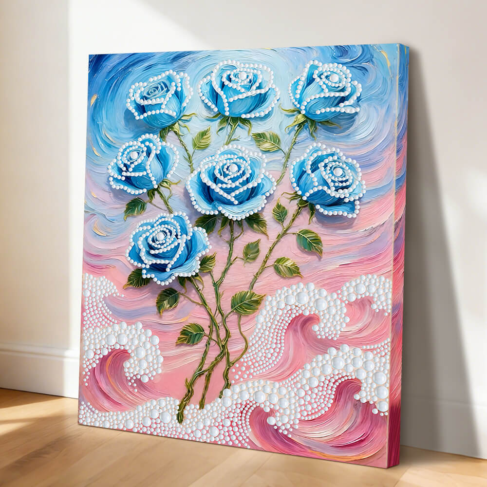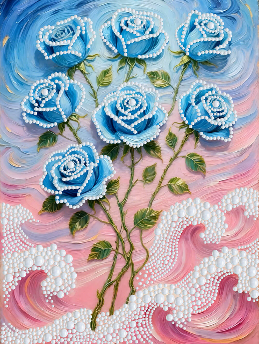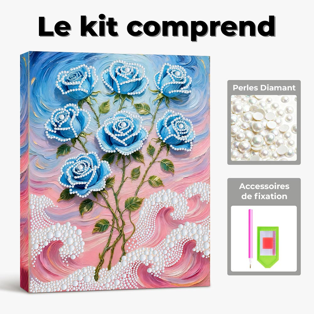Broderie Diamant | Broderie Perle | Roses Bleues et Vagues Roses