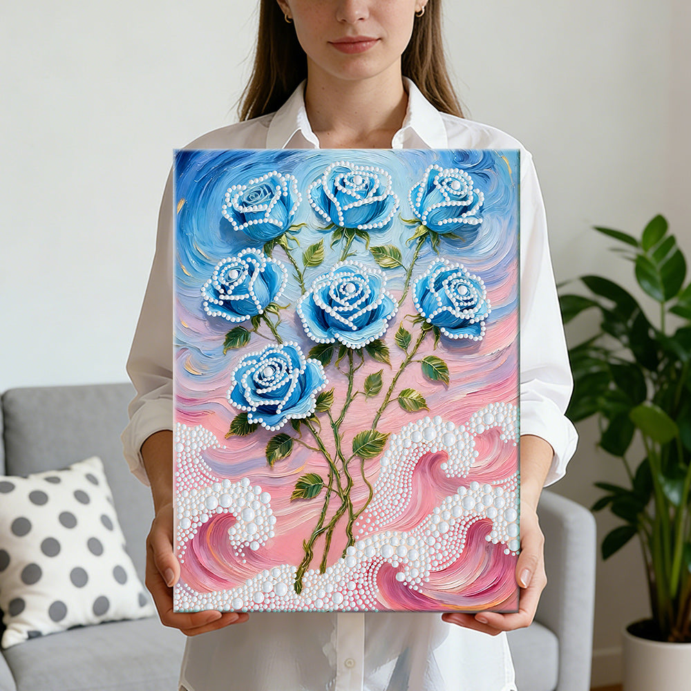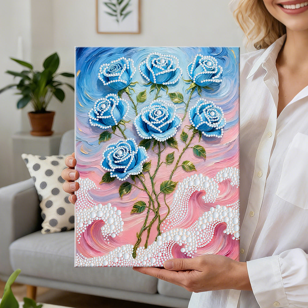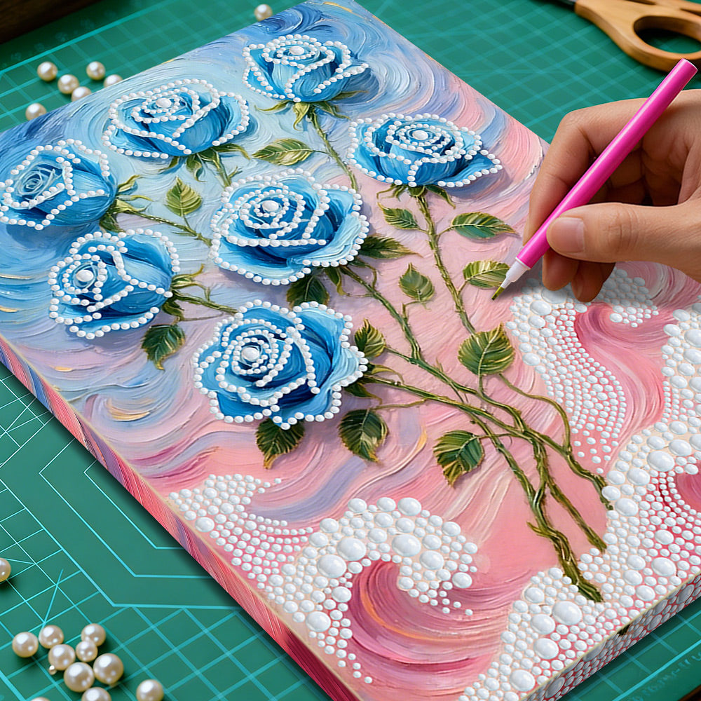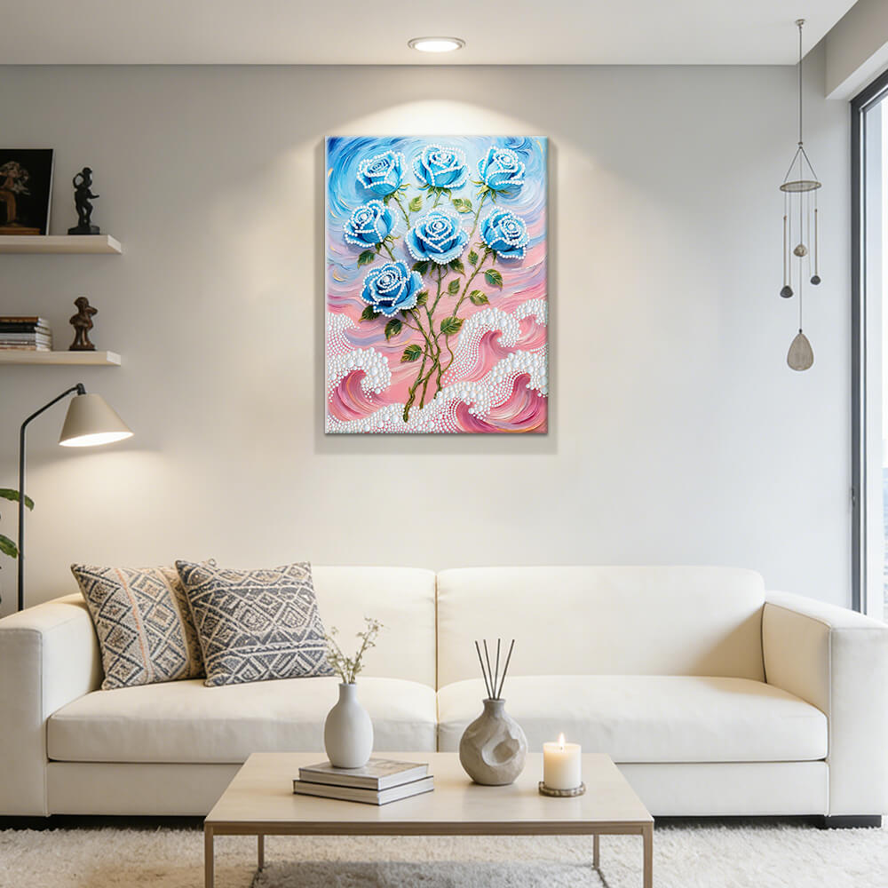 Broderie Diamant | Broderie Perle | Roses Bleues et Vagues Roses