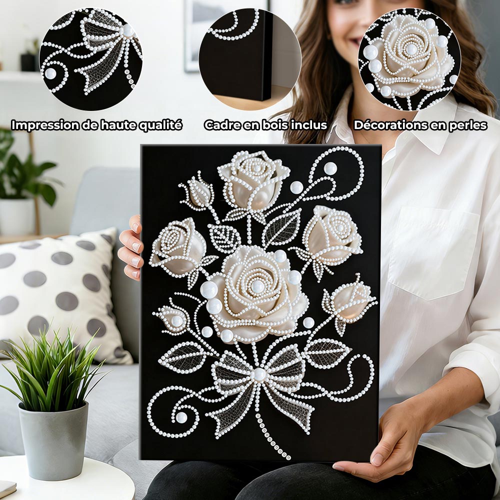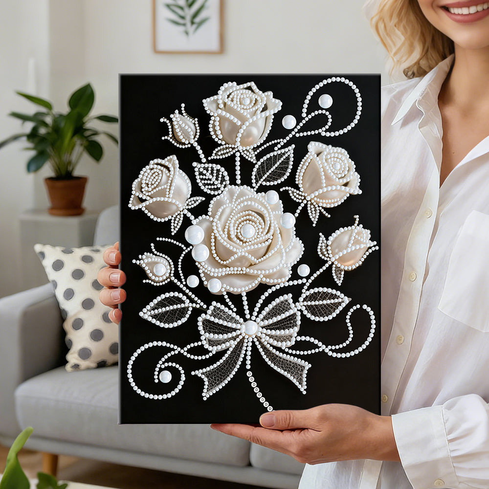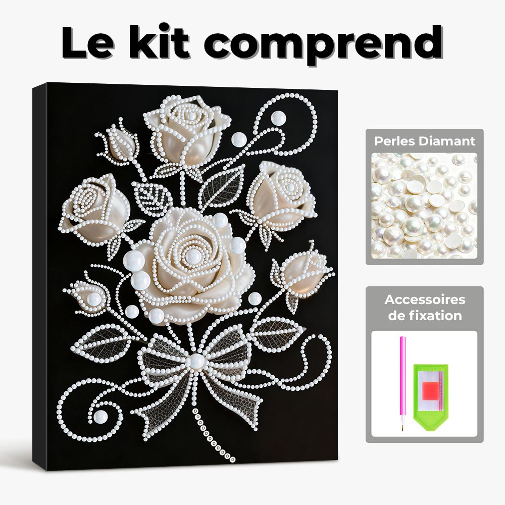 Broderie Diamant | Broderie Perle | Roses d'un Blanc Immaculé
