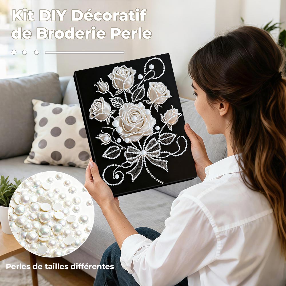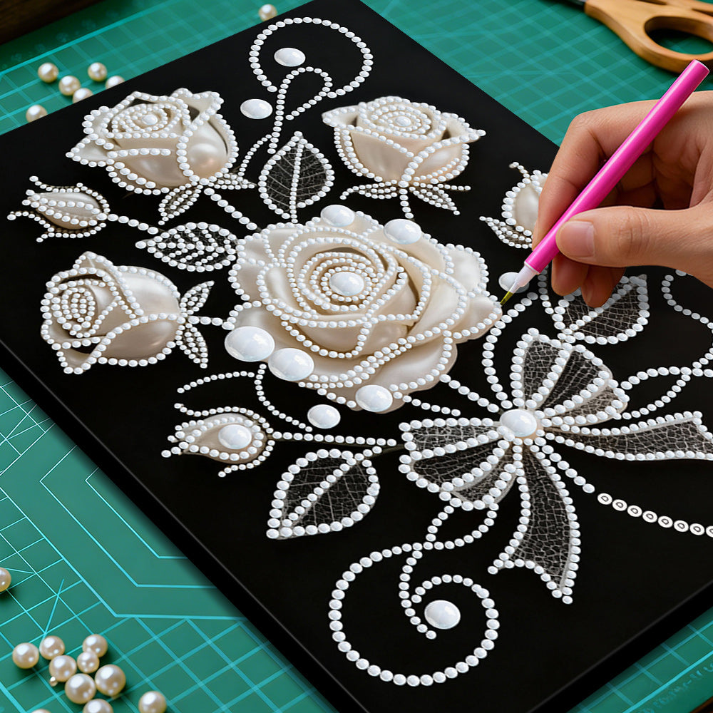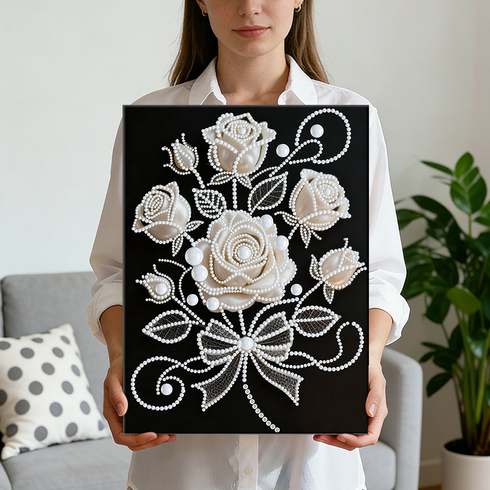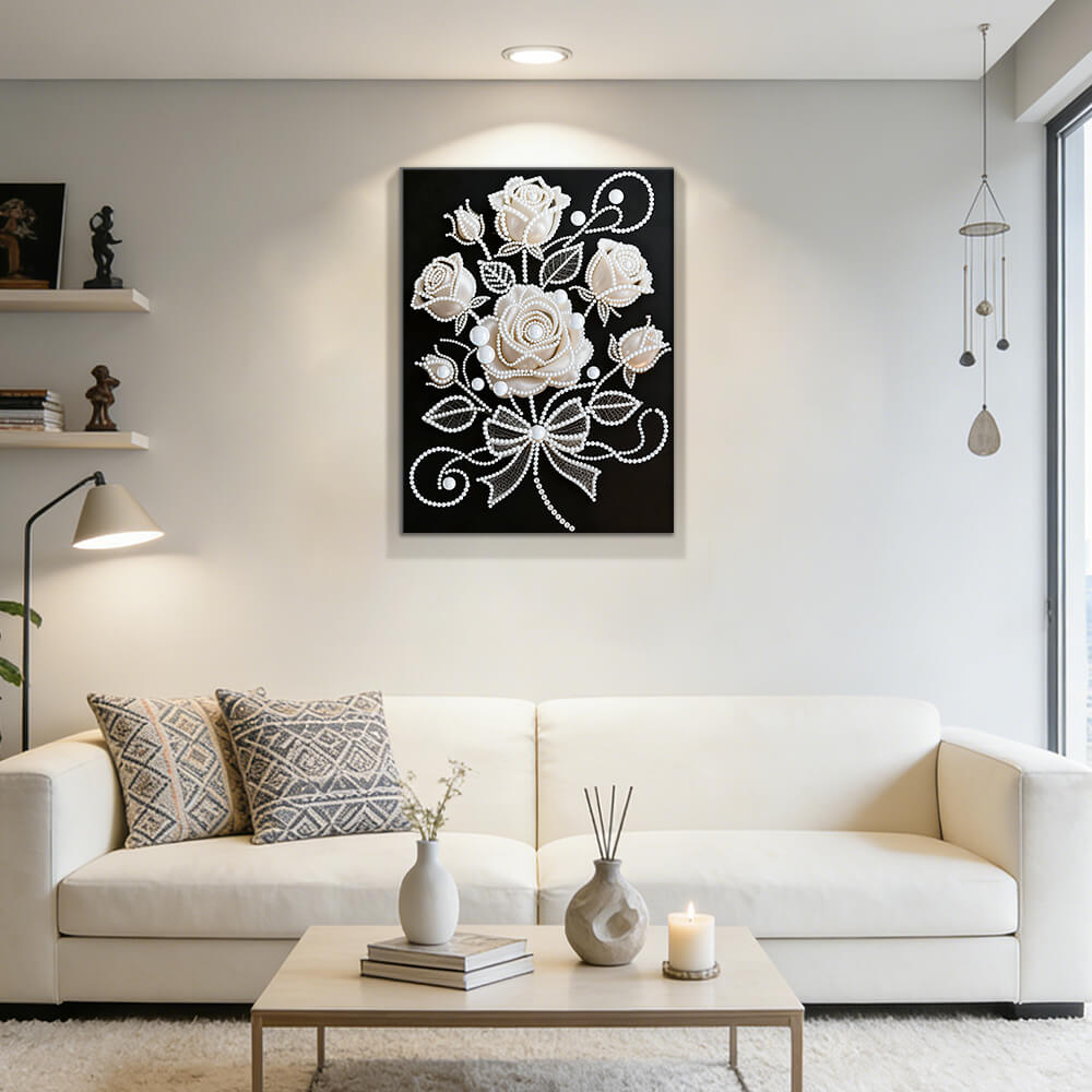 Broderie Diamant | Broderie Perle | Roses d'un Blanc Immaculé
