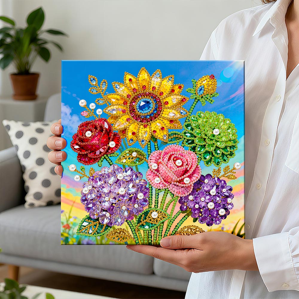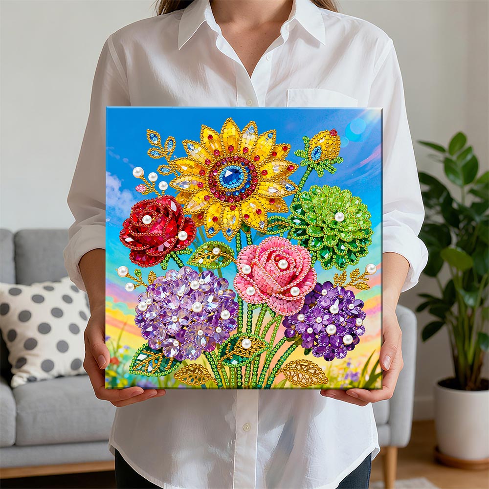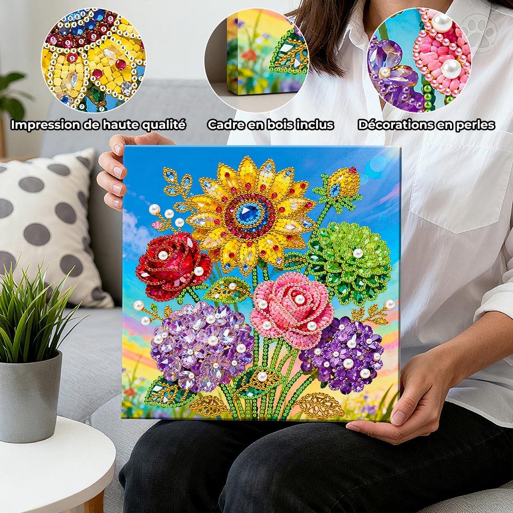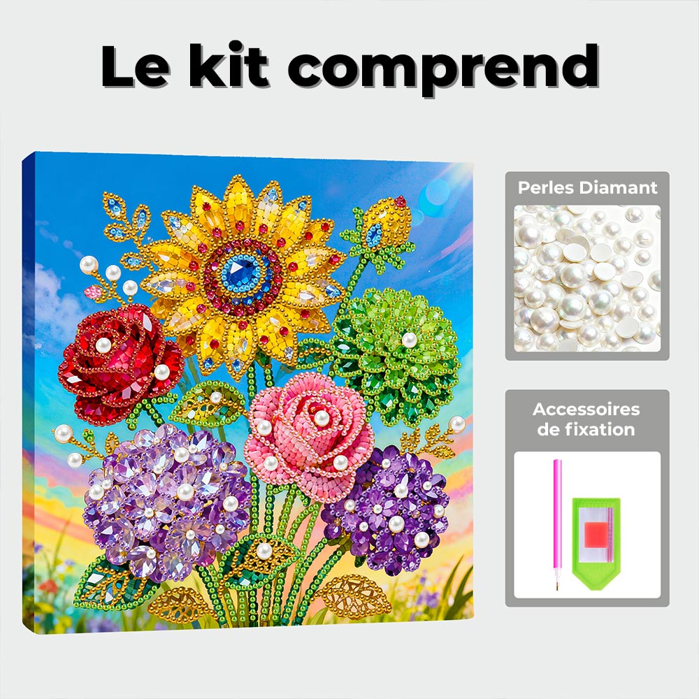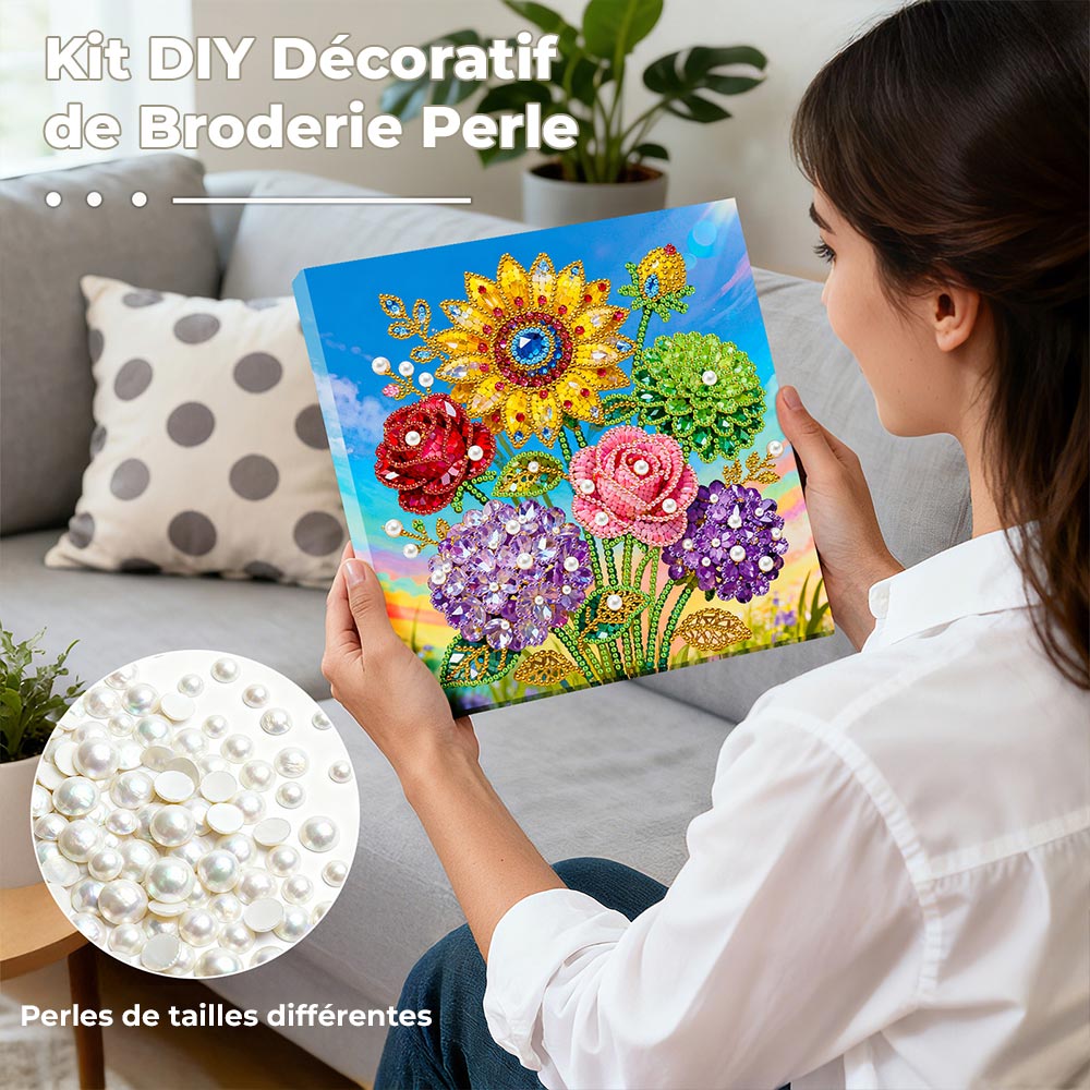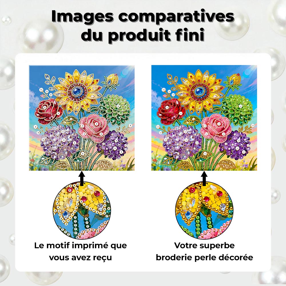 Broderie Diamant | Broderie Perle | Roses, Hortensias et Tournesol