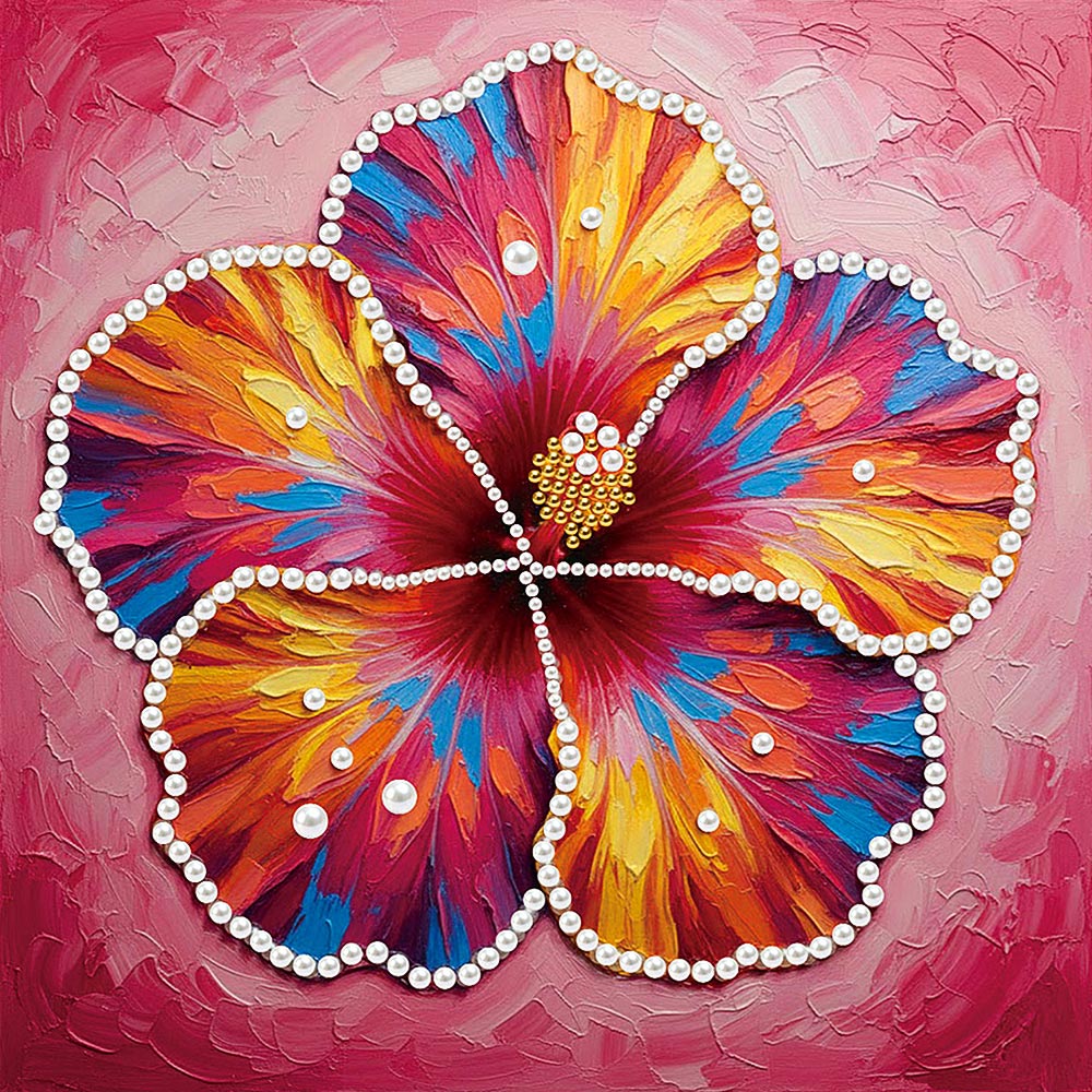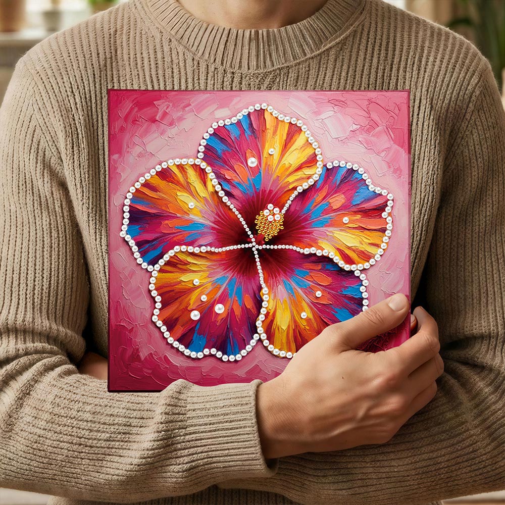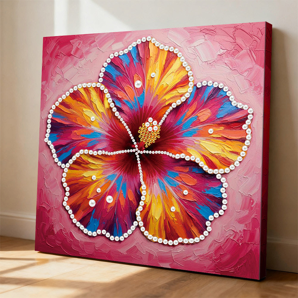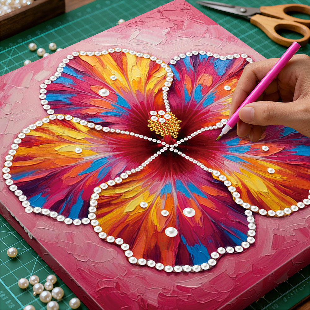 Broderie Diamant | Broderie Perle | Une Fleur d'Hibiscus en Pleine Floraison