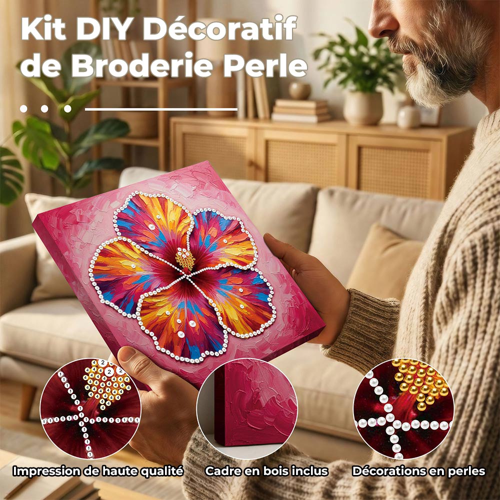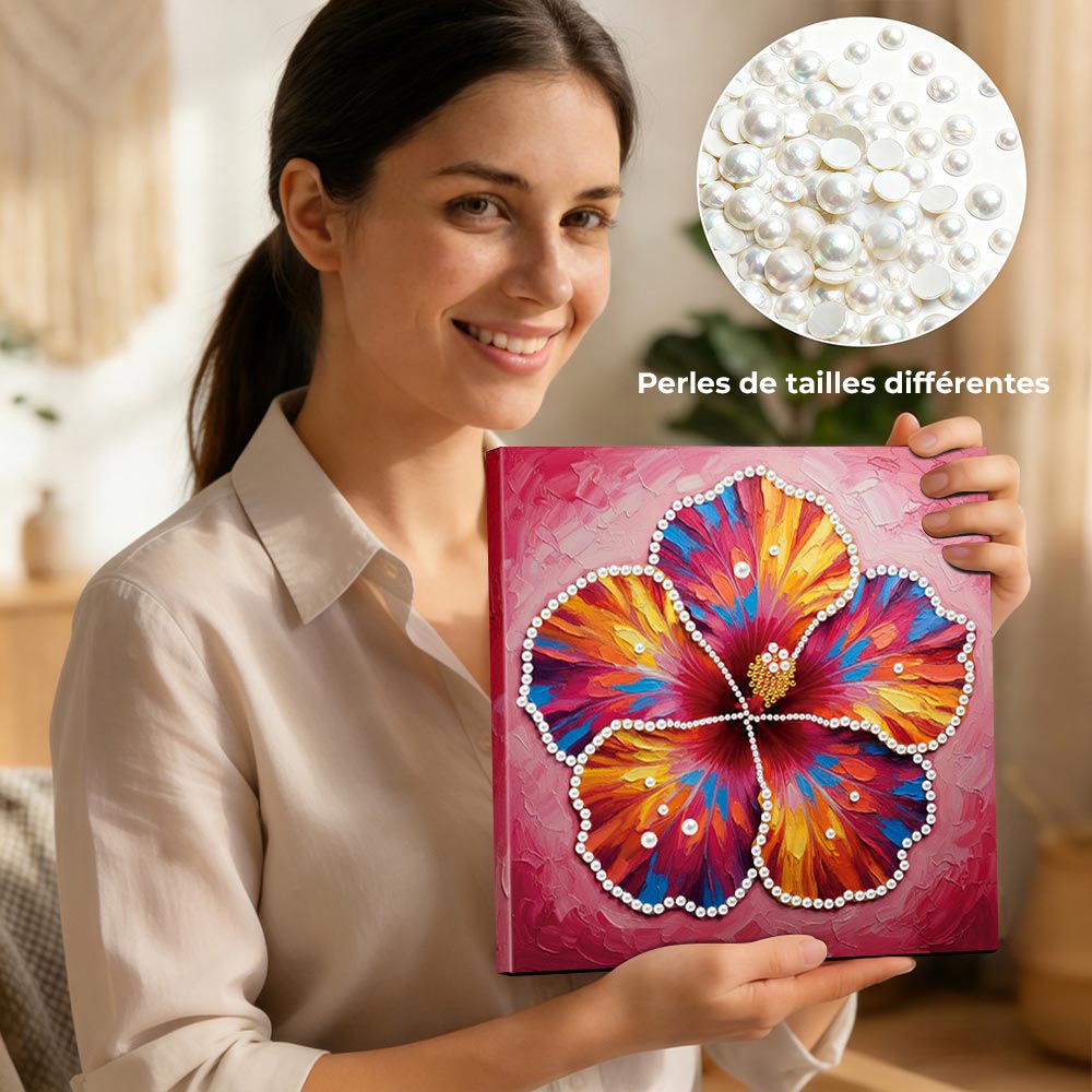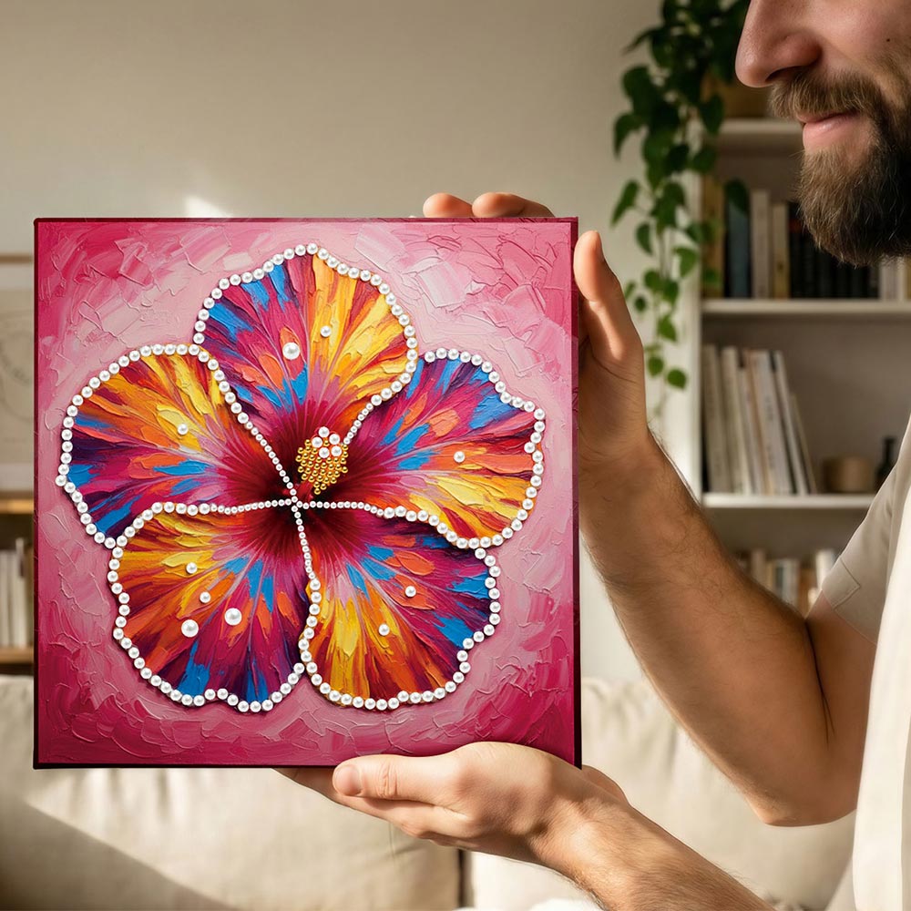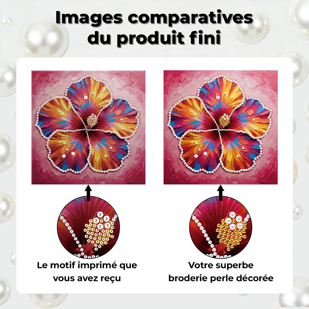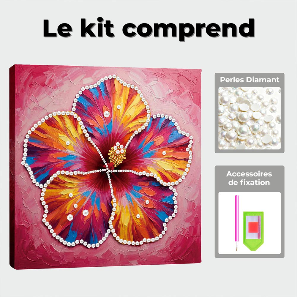 Broderie Diamant | Broderie Perle | Une Fleur d'Hibiscus en Pleine Floraison